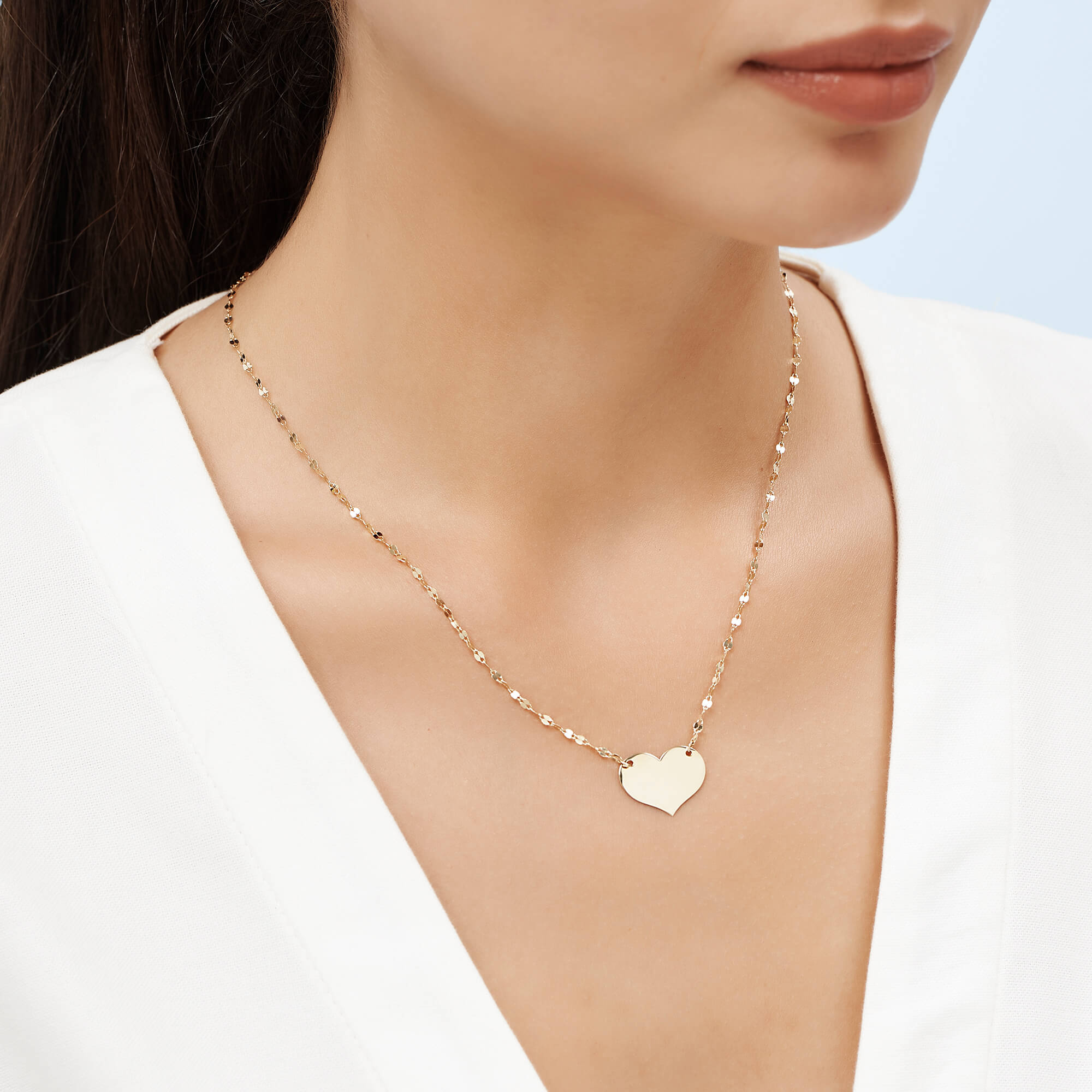 Introducing the Heart Name Plate Gold Necklace from the esteemed Altınbaş Jewelry collection. This exquisite piece is crafted from 14K yellow gold, a testament to its superior quality and enduring beauty. Without the distraction of stones, the necklace's simple elegance shines through, making it a versatile piece that complements any outfit. This necklace is not just a piece of jewelry; it's a symbol of sincere and genuine love. The heart-shaped name plate serves as a canvas for personalization, allowing you to engrave a name or a special date, making it a heartfelt gift for a loved one. Ideal for new moms, this necklace is a beautiful way to celebrate the birth of a child. Engrave the newborn's name on the heart, creating a keepsake that will be cherished for years to come. It's not just a necklace, it's a token of love that will be worn close to the heart, reminding the wearer of the special bond between a mother and her child. This Heart Name Plate Gold Necklace also makes a thoughtful wedding party gift. Show your appreciation to your bridesmaids by gifting them this personalized necklace, a memento of your special day that they can wear and treasure. This piece is more than just a necklace; it's an expression of timeless beauty. The 14K yellow gold gives it a warm, rich hue that never goes out of style. It's a piece that can be passed down through generations, its beauty and sentiment enduring through time. Perfect for women who appreciate the finer things in life, this Heart Name Plate Gold Necklace from Altınbaş Jewelry is a piece that speaks volumes. It's a gift that says, "You are loved, you are cherished, and you are remembered." This necklace is not just a piece of jewelry, but a symbol of love that will be treasured forever.