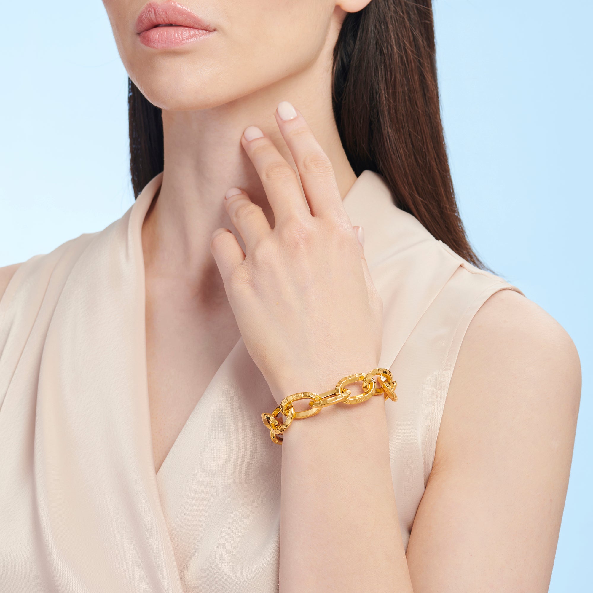 Introducing the epitome of timeless elegance and sophistication, the 22K Gold Bracelet from Altınbaş Jewelry. This luxurious piece is meticulously designed to highlight your style and elevate your elegance. Crafted from 22K yellow gold, the bracelet showcases a radiant glow that is sure to captivate the attention of all onlookers. Without the distraction of stones, the focus of this stunning piece is purely on the precious metal, allowing the superior quality of the 22K gold to truly shine. The warm yellow hue of the gold exudes a classic appeal that never goes out of style. This bracelet is a testament to the enduring allure of gold, a metal that has been cherished for its beauty and value throughout history. Each link of this bracelet is carefully crafted to ensure a smooth and comfortable fit, making it a joy to wear throughout the day. The clasp is secure yet easy to operate, adding to the practicality of this exquisite piece. The 22K Gold Bracelet is more than just a piece of jewelry. It is a statement of refined taste and sophistication, a radiant symbol of timeless elegance. Whether worn alone or paired with other pieces from your collection, this bracelet is sure to enhance your look with its undeniable charm. This bracelet is not just a purchase, but an investment in quality and style. Its timeless design ensures that it will remain a cherished part of your collection for years to come. So why wait? Add a touch of gold to your life with the 22K Gold Bracelet from Altınbaş Jewelry.