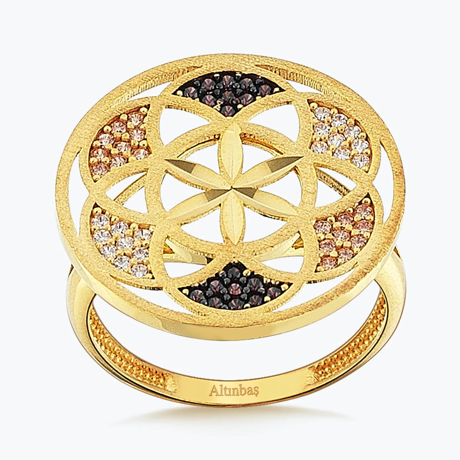 Homepage > Cubic Zirconia > 22K Flower of Life Gold Ring