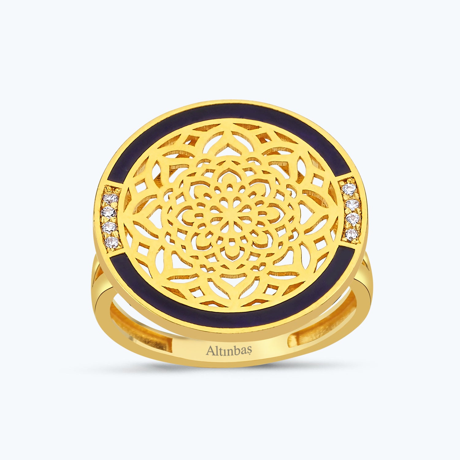 Introducing the 22K Mandala Gold Ring from Altınbaş Jewelry, a luxurious symbol of the infinite cycle of beauty. This exquisite piece is not just a ring, but a treasure that lasts forever, designed to resonate with the sophisticated woman who appreciates quality and timeless elegance. Crafted from 22K yellow gold, this ring showcases the exceptional quality and craftsmanship that Altınbaş Jewelry is renowned for. The gold's rich, warm hue is a testament to its high purity, making it a truly valuable addition to any jewelry collection. The ring's design is inspired by the intricate patterns of a mandala, a symbol of harmony and unity. The mandala motif is beautifully rendered in the form of a round, mesmerizing cubic zirconia at the center of the ring. The cubic zirconia, known for its brilliance and durability, adds a captivating sparkle that is sure to draw attention. This ring is more than just an accessory. It is a statement of style and sophistication, perfect for the woman who loves to express her individuality. The round shape of the ring, a symbol of eternity, reflects the endless cycle of beauty that this ring embodies. The 22K Mandala Gold Ring is a testament to Altınbaş Jewelry's commitment to creating pieces that are not only beautiful but also meaningful. This ring is a treasure that is designed to last forever, just like the memories it will help create. Whether it's a gift for a loved one or a treat for yourself, this ring is a perfect choice. It's a piece of jewelry that's not only stunning but also carries a deep, symbolic meaning. It's more than just a ring - it's a statement, a symbol, and a treasure that will last forever.