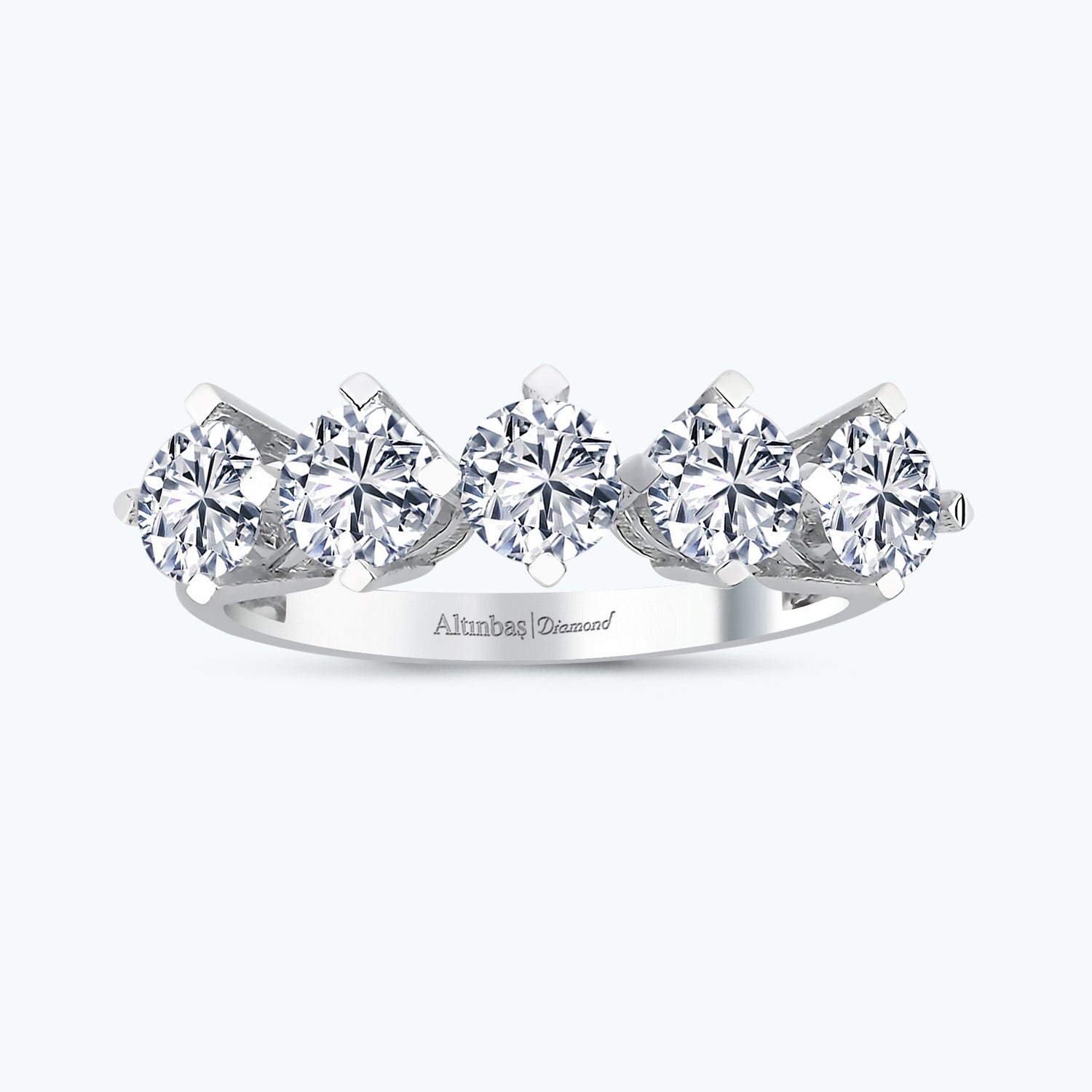 Introducing the Altınbaş 5-Stone Gold Engagement Ring, an exquisite symbol of pure elegance and love. This stunning piece is meticulously crafted from 14K white gold, a testament to our commitment to quality and sophistication. Its radiant sheen mirrors the brilliance of the sun, adding a touch of warmth and brightness to every occasion. The ring features a FiveStone design, each stone representing a unique chapter in your love story. The stones are made of high-quality cubic zirconia, handpicked for their exceptional clarity and brilliance. Each stone is round cut, a classic choice that maximizes light return and sparkles from every angle. This design not only enhances the value of your special moments but also ensures an unbroken continuity of style. The 5-Stone Gold Engagement Ring is not just a piece of jewelry, but a promise of a lifetime. It's a perfect choice for those seeking a timeless piece that will never go out of style. Every time you glance at this ring, you'll be reminded of the special bond you share with your partner. At Altınbaş, we believe in creating jewelry that tells a story. This engagement ring is more than just a beautiful accessory; it's a symbol of your love and commitment. Let this ring be a reminder of your unique journey together, filled with love, joy, and unforgettable moments. Whether you're popping the question or celebrating a milestone anniversary, this 5-Stone Gold Engagement Ring is the perfect choice. With its elegant design and superior craftsmanship, it's sure to make any occasion even more special. Experience the brilliance of Altınbaş jewelry and let our pieces be a part of your love story.