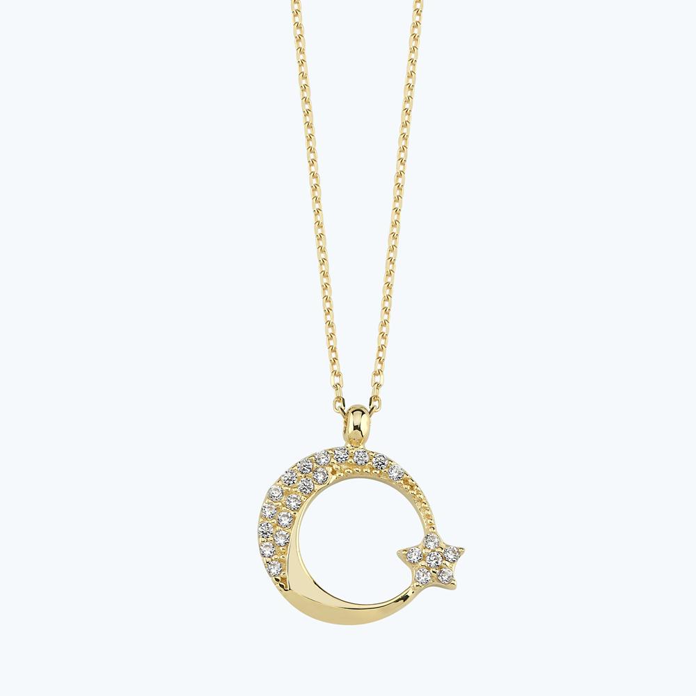 Homepage > Bride's Gift > Gold Crescent Star Necklace