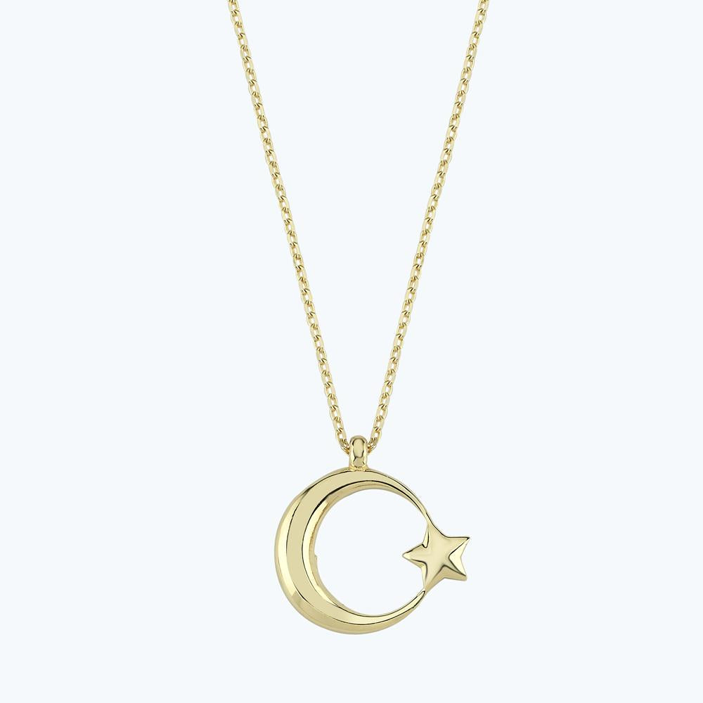 Gold Crescent and Star Necklace