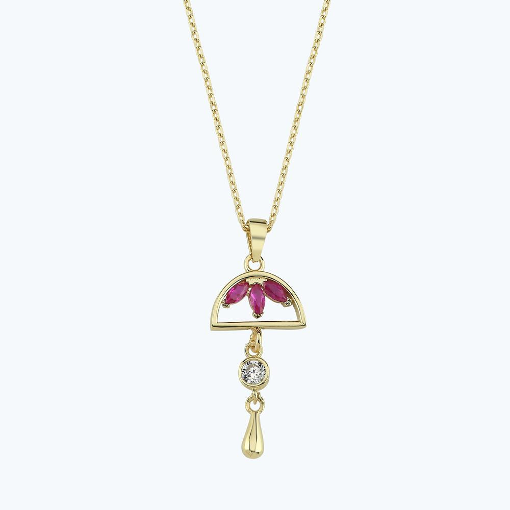 Homepage > Bride's Gift > Gold Dangle Necklace with Pink Stone