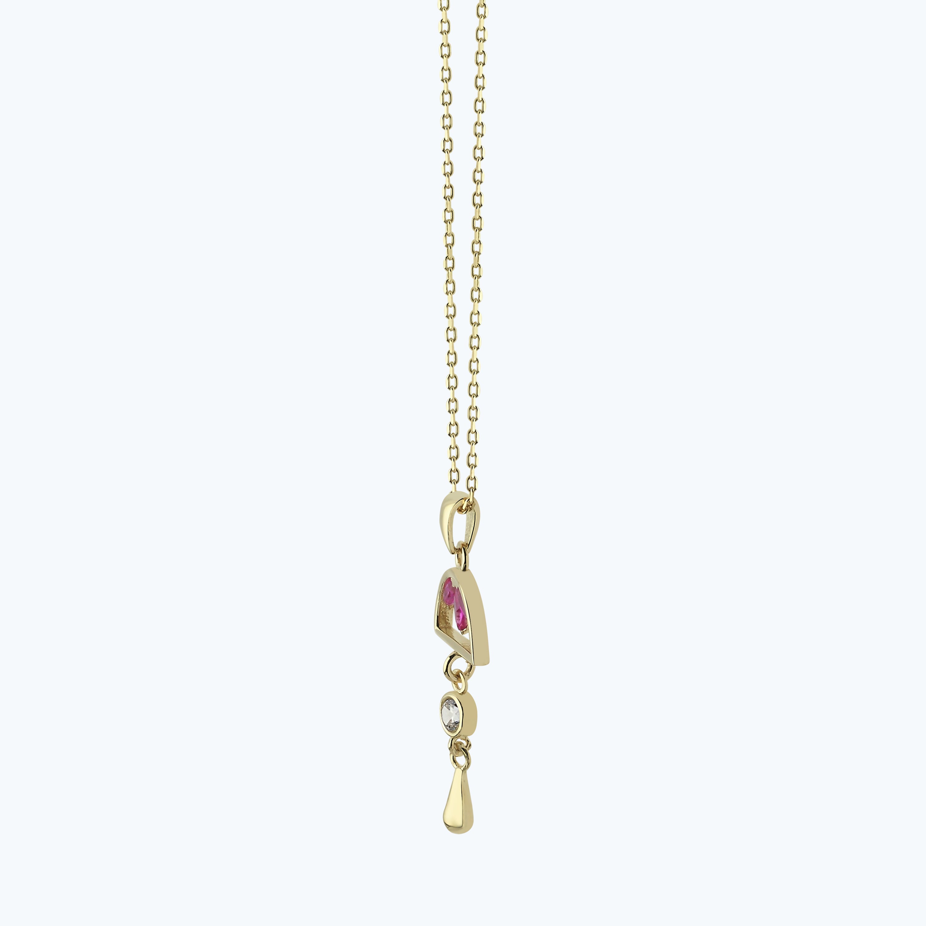Gold Dangle Necklace with Pink Stone
