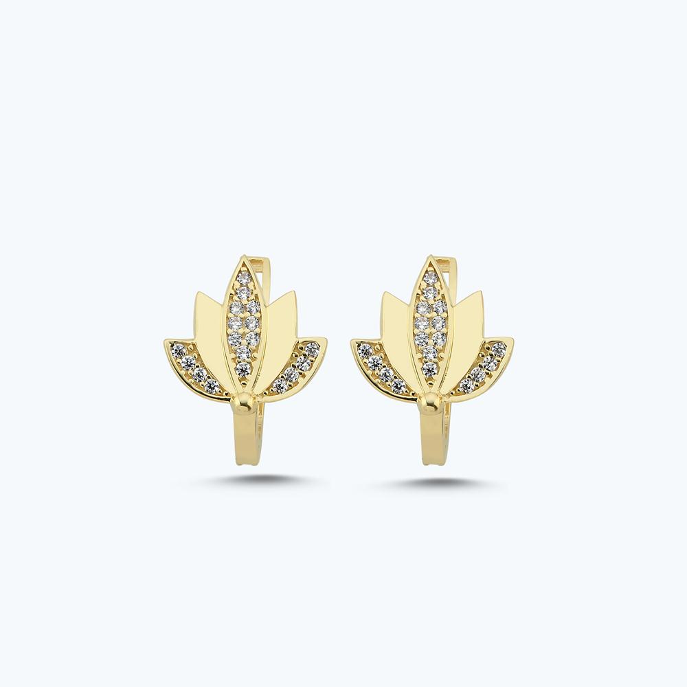 Homepage > Bride's Gift > Gold Lotus Earrings with Stone