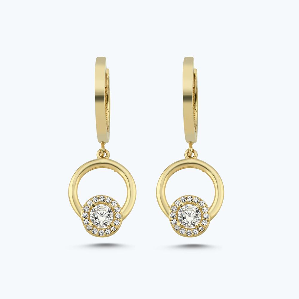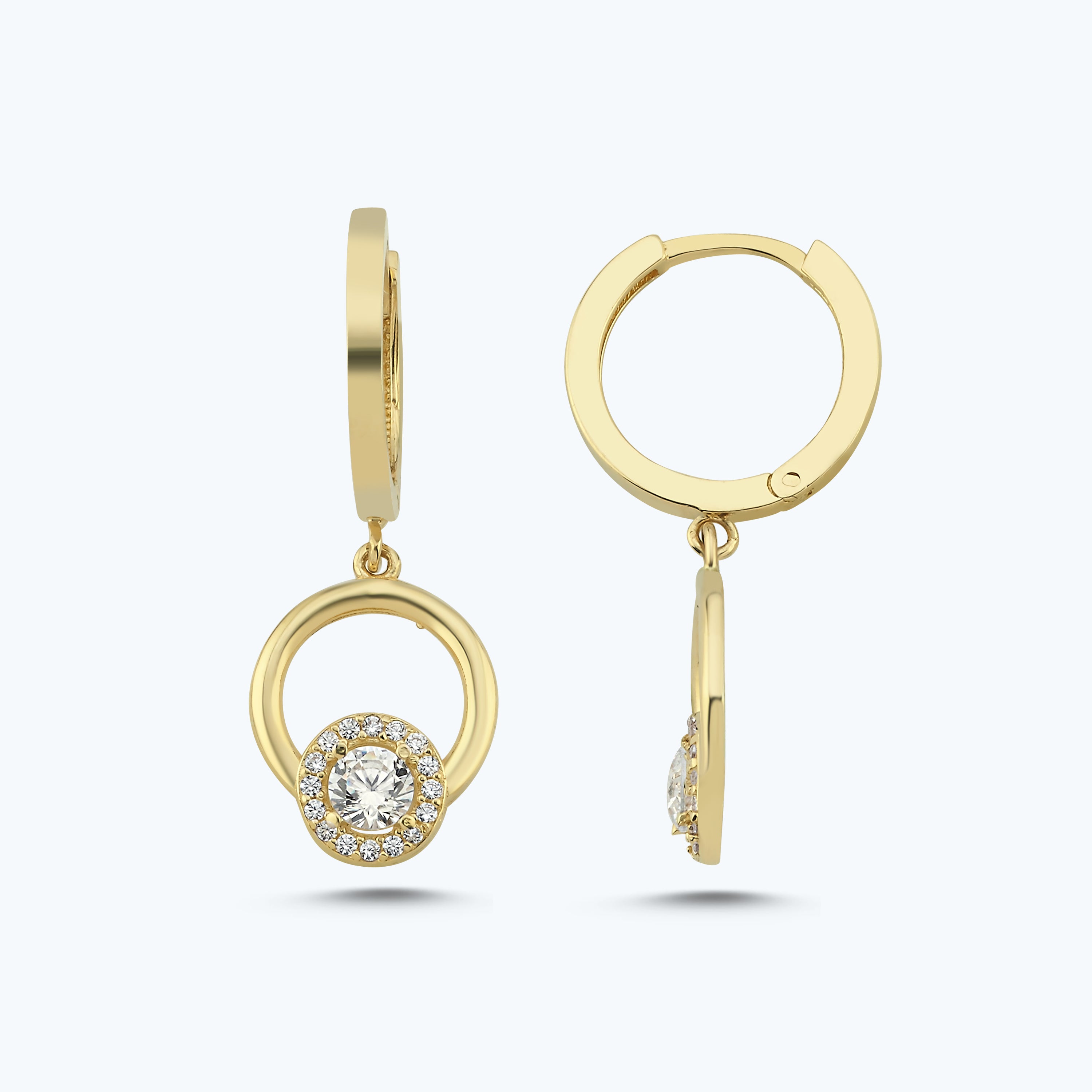 Homepage > Bride's Gift > Gold Dangle Hoop Earrings with Stone