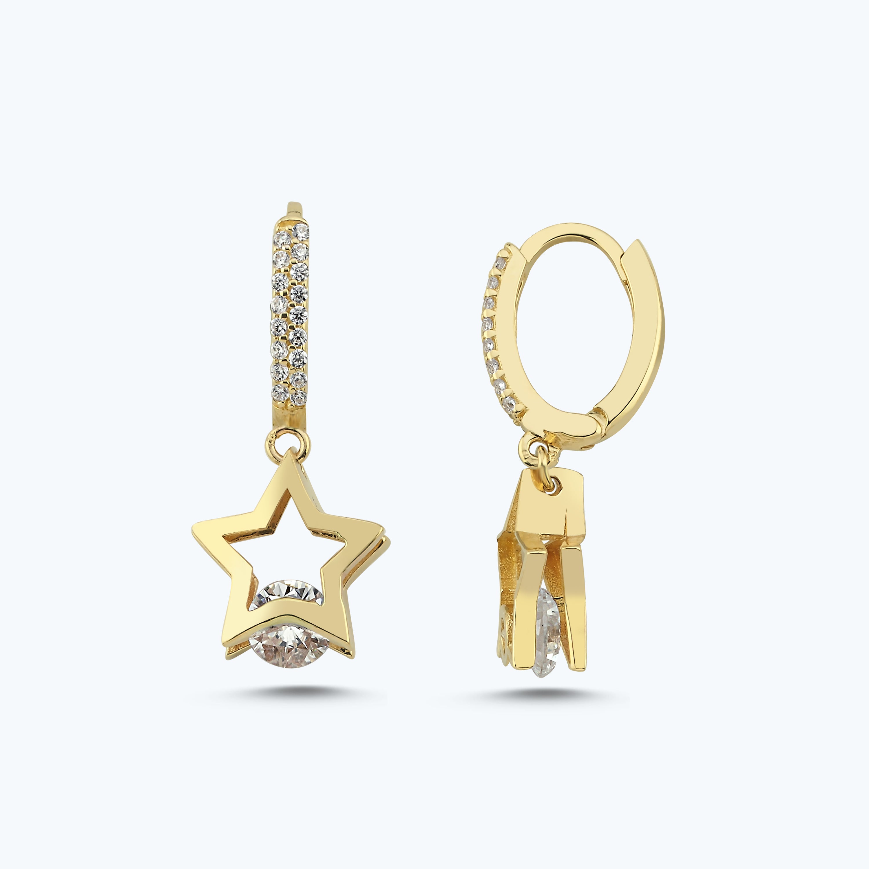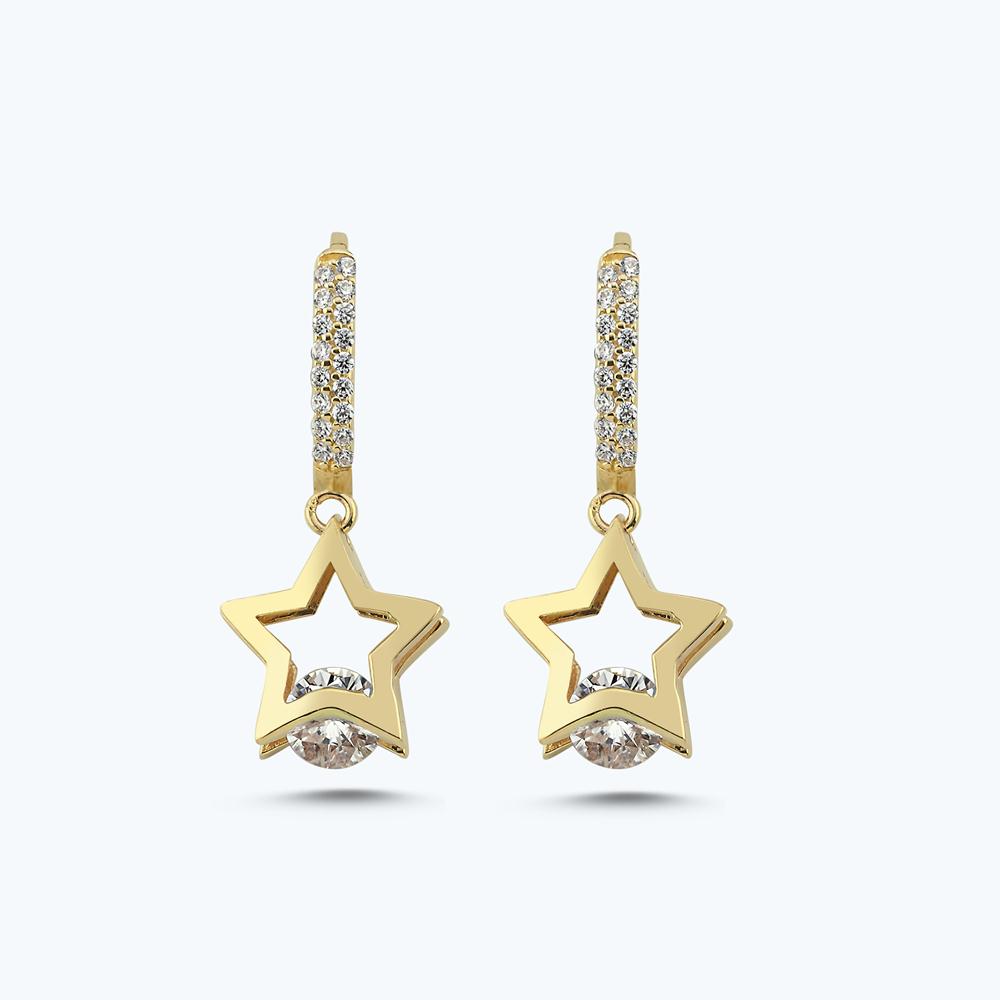 Homepage > Bride's Gift > Dangling Gold Star Hoop Earrings