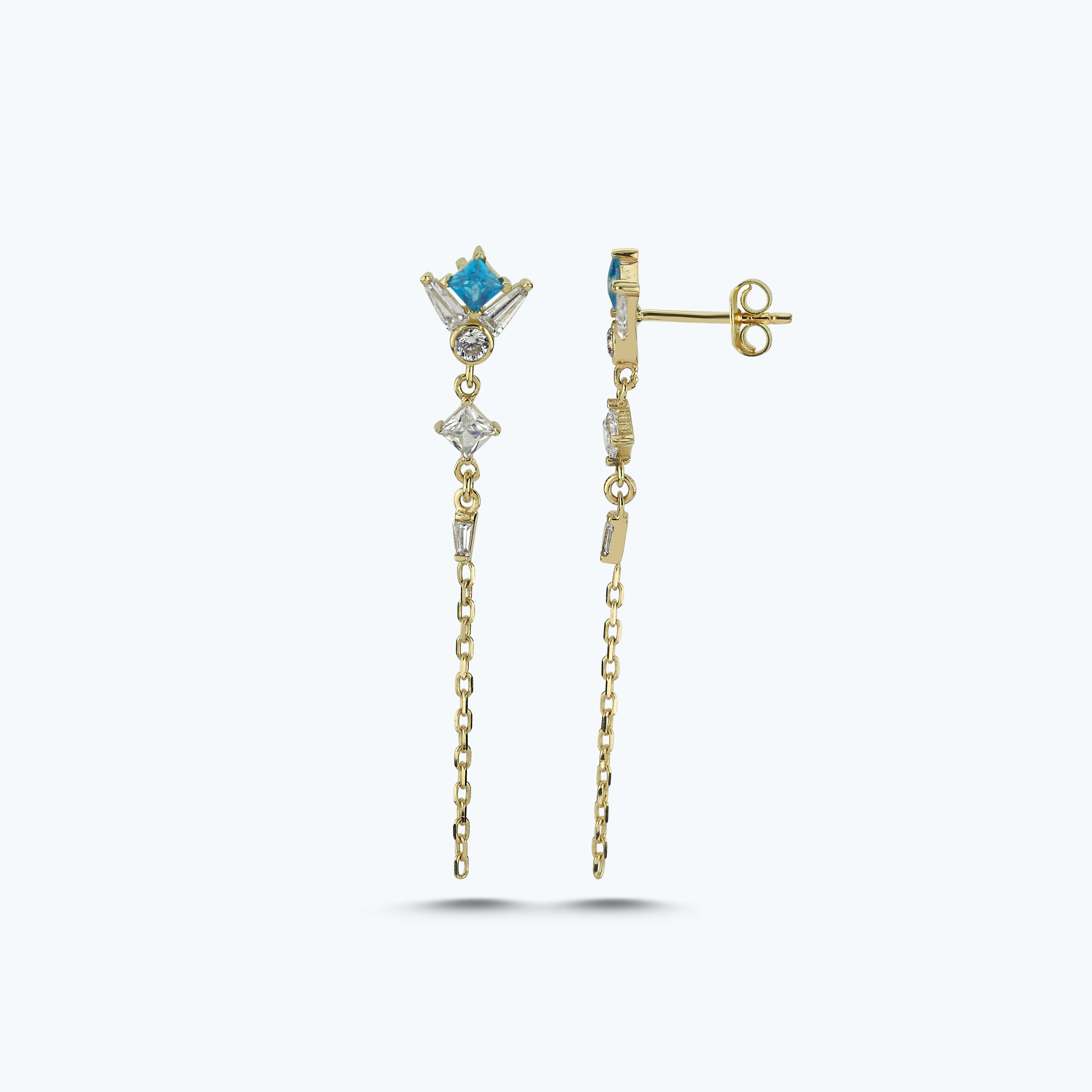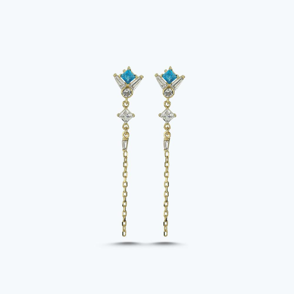 Homepage > Bride's Gift > Dangling Gold Earrings with Blue Stone