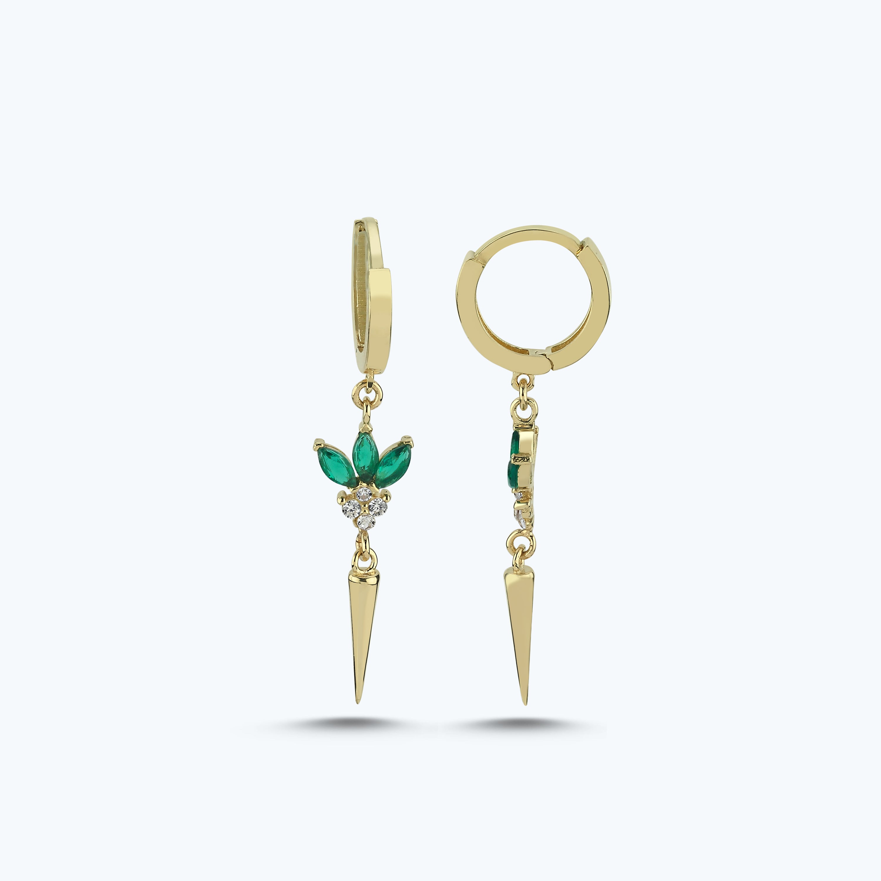 Homepage > Bride's Gift > Dangling Gold Hoop Earrings with Green Stone