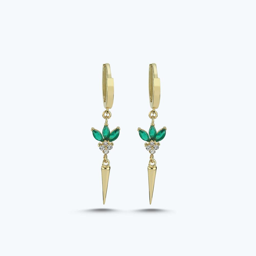 Dangling Gold Hoop Earrings with Green Stone