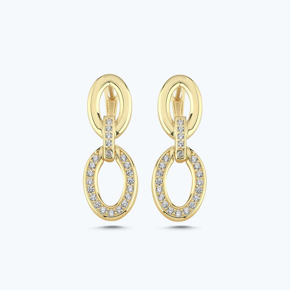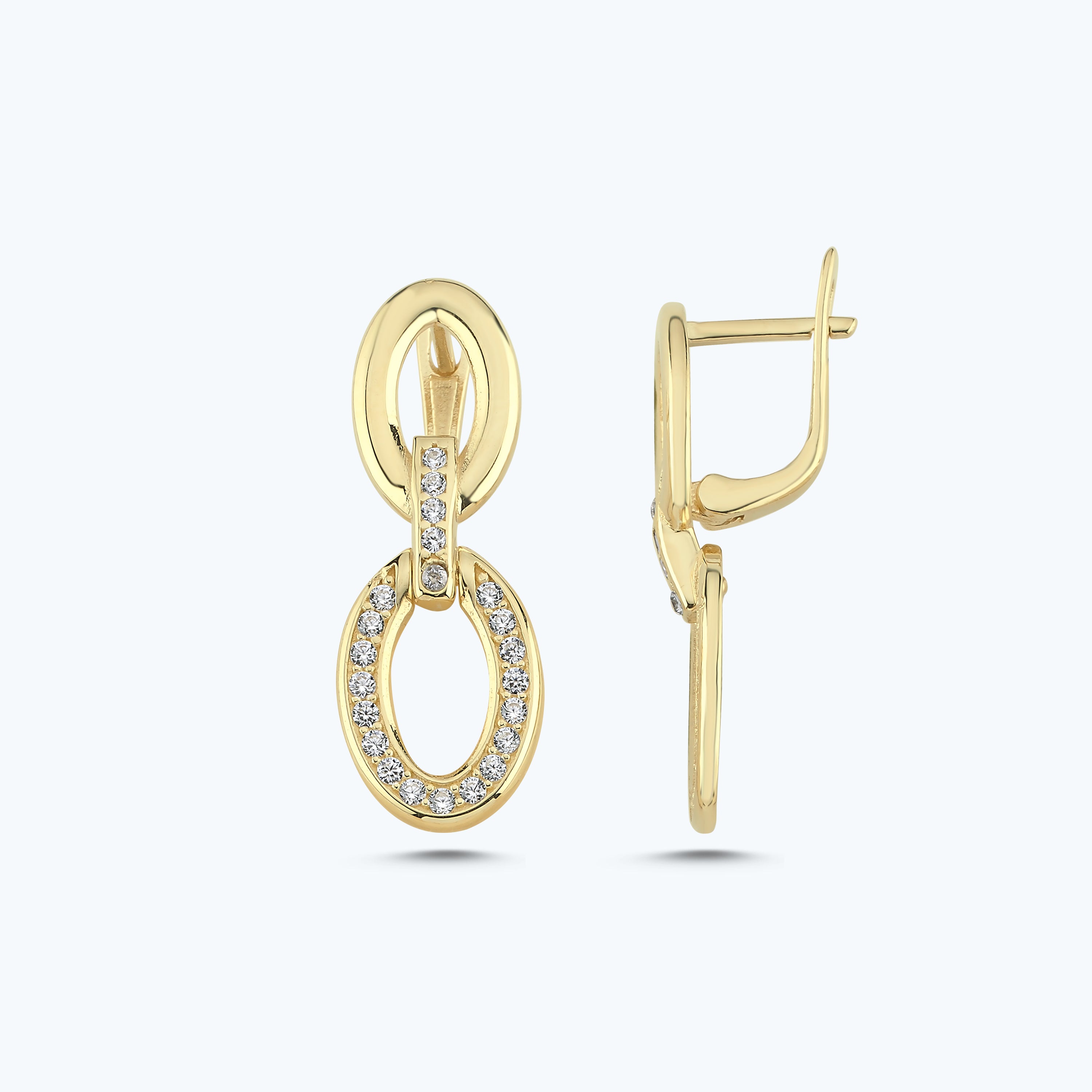 Homepage > Bride's Gift > Gold Dangling Oval Earrings with Stone