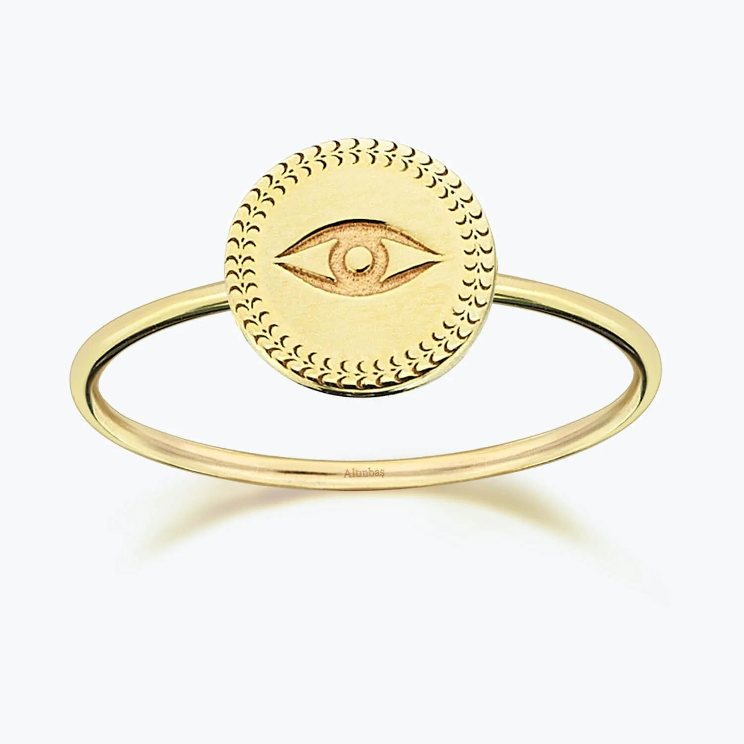 Altınbaş Jewellery Altınbaş Life Eye Gold Ring is carefully handcrafted from 14K Solid Gold with a dainty design by experienced craftsmen.