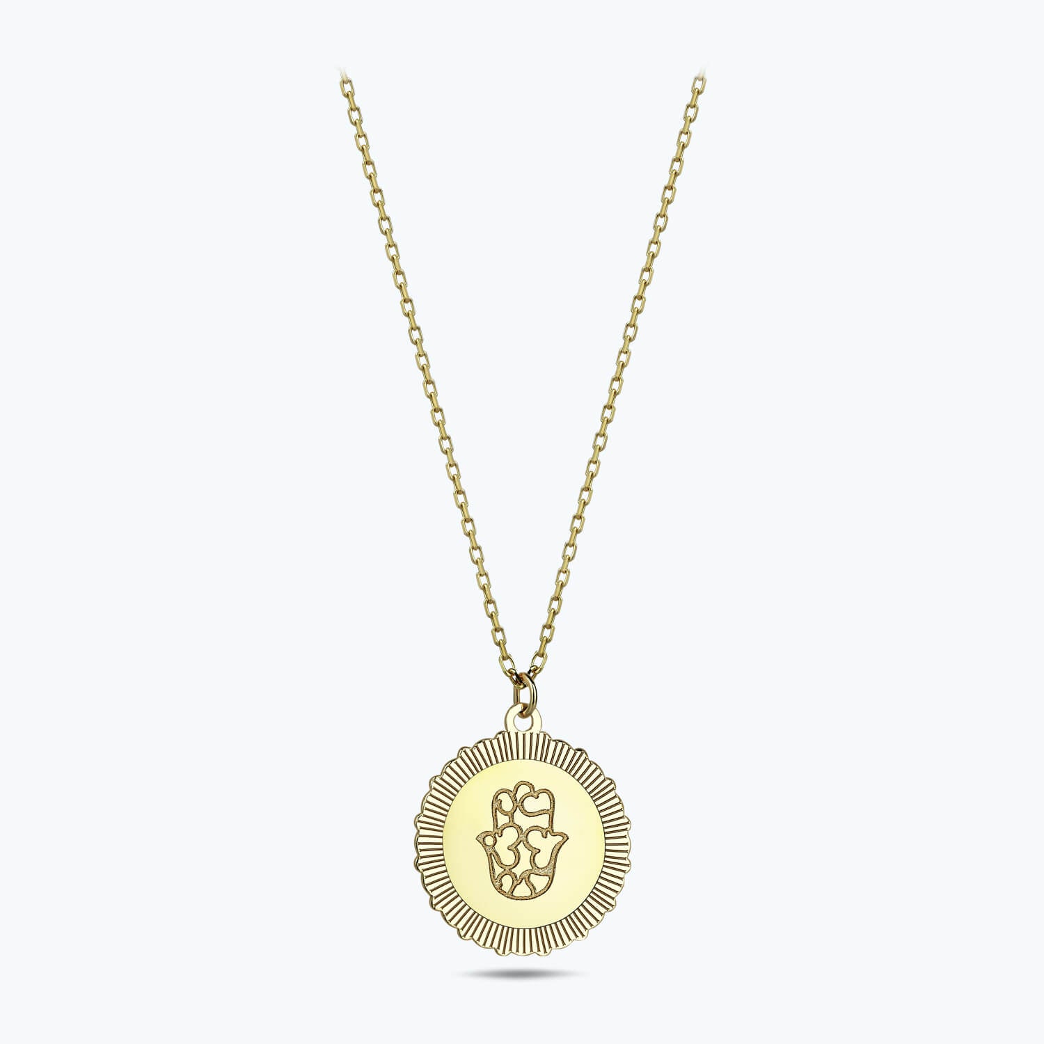 Altınbaş Jewellery Altınbaş Life Fatima's Hand Gold Necklace is carefully handcrafted from 14K Solid Gold with a dainty design by experienced craftsmen.