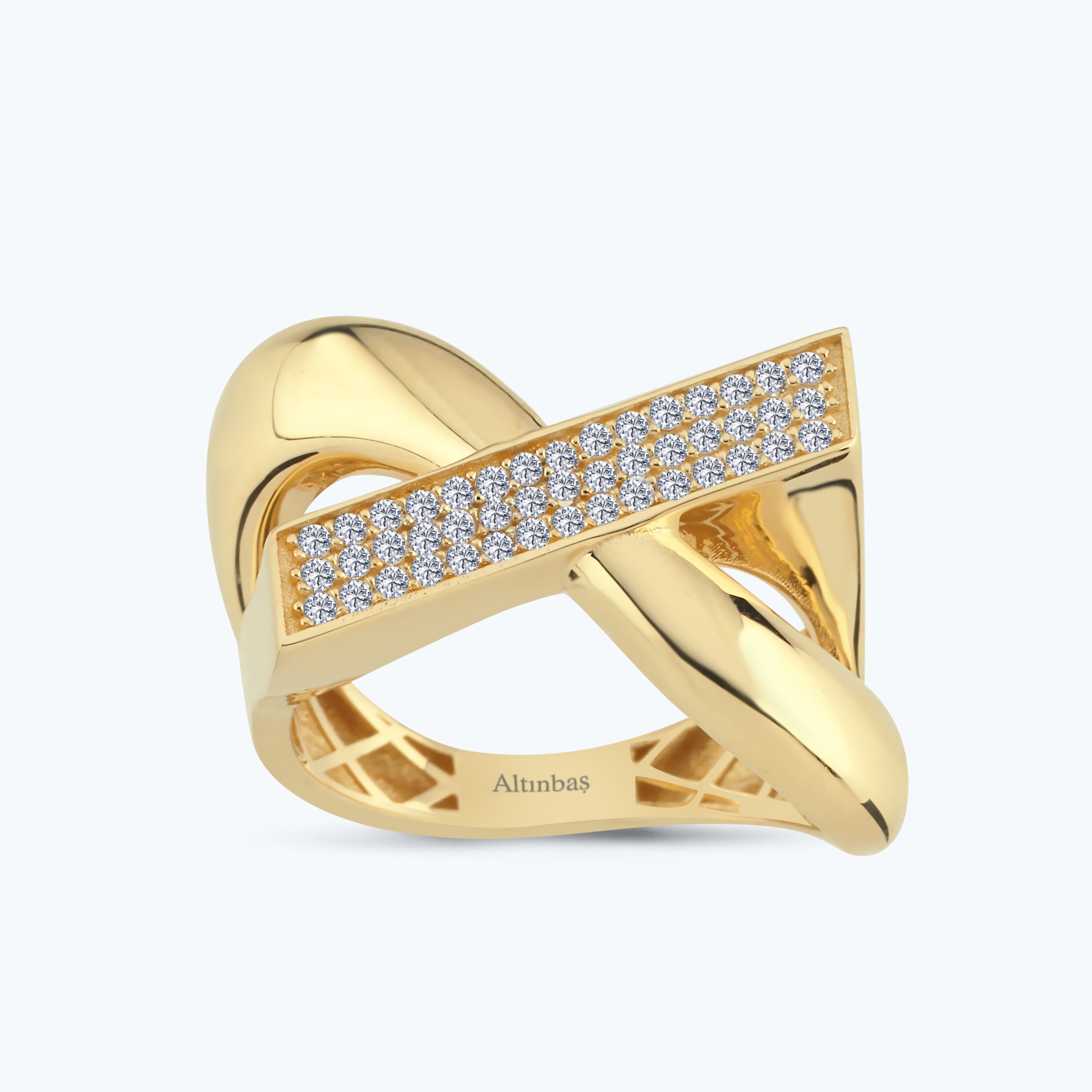 Homepage > Bride's Gift > Cross Line Stone Gold Ring