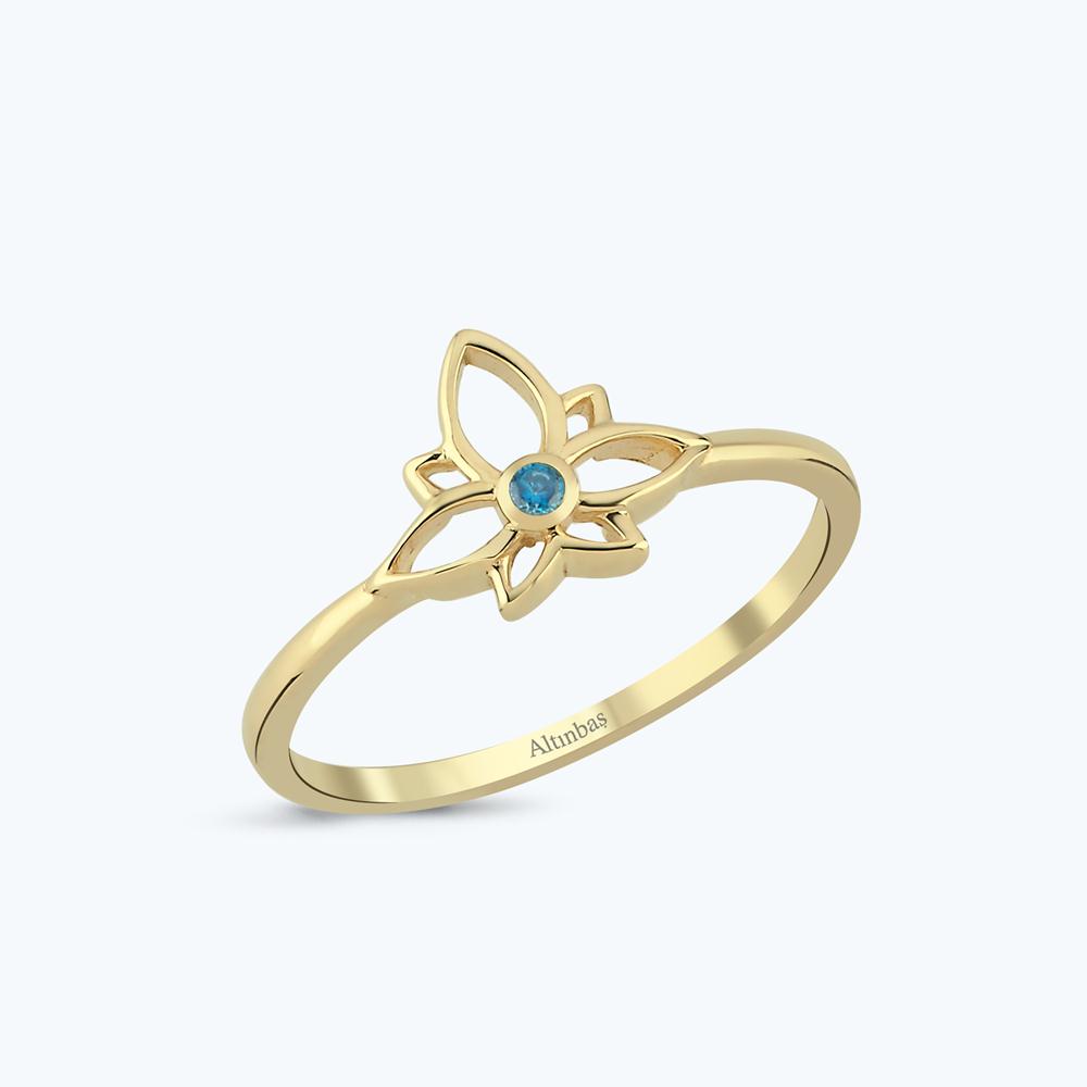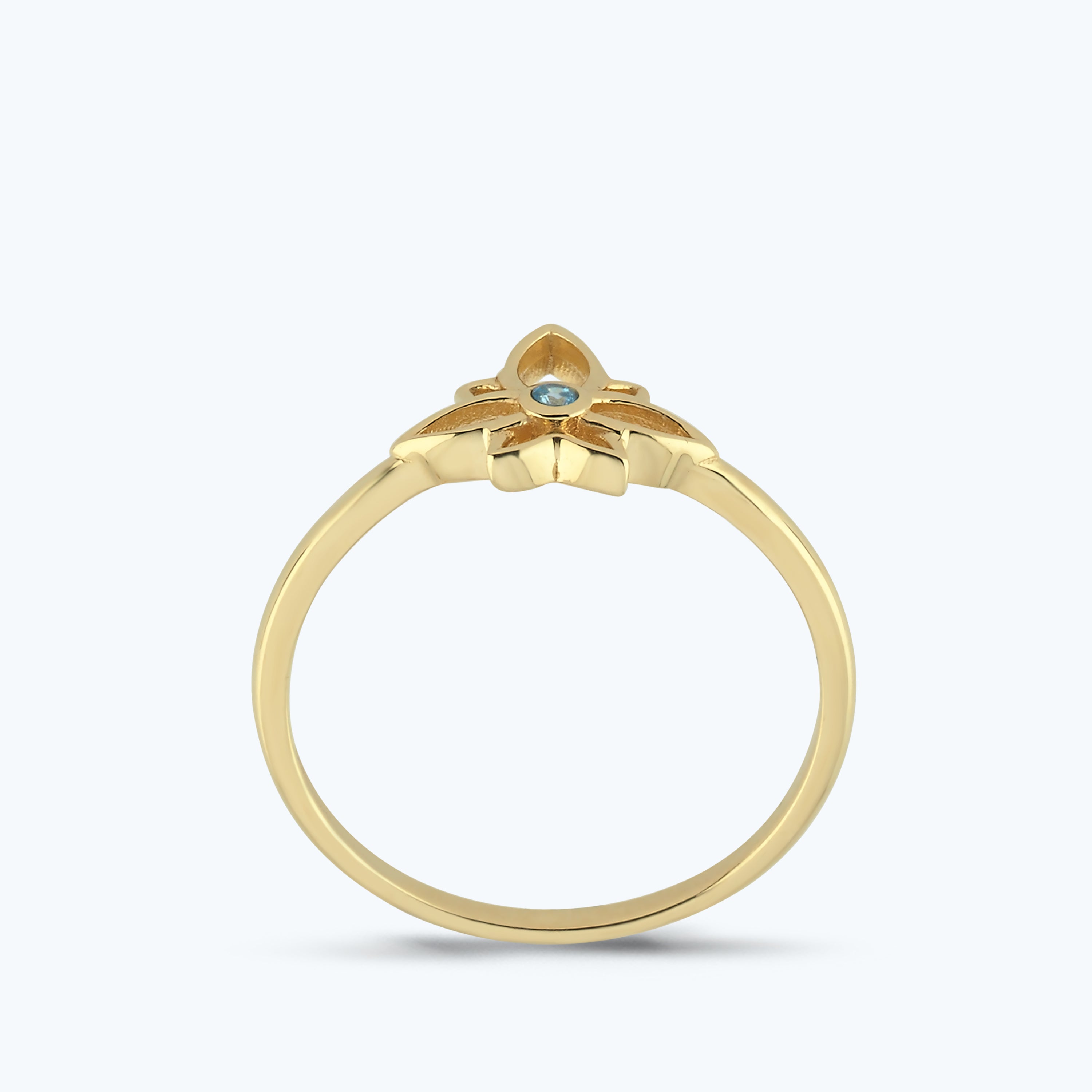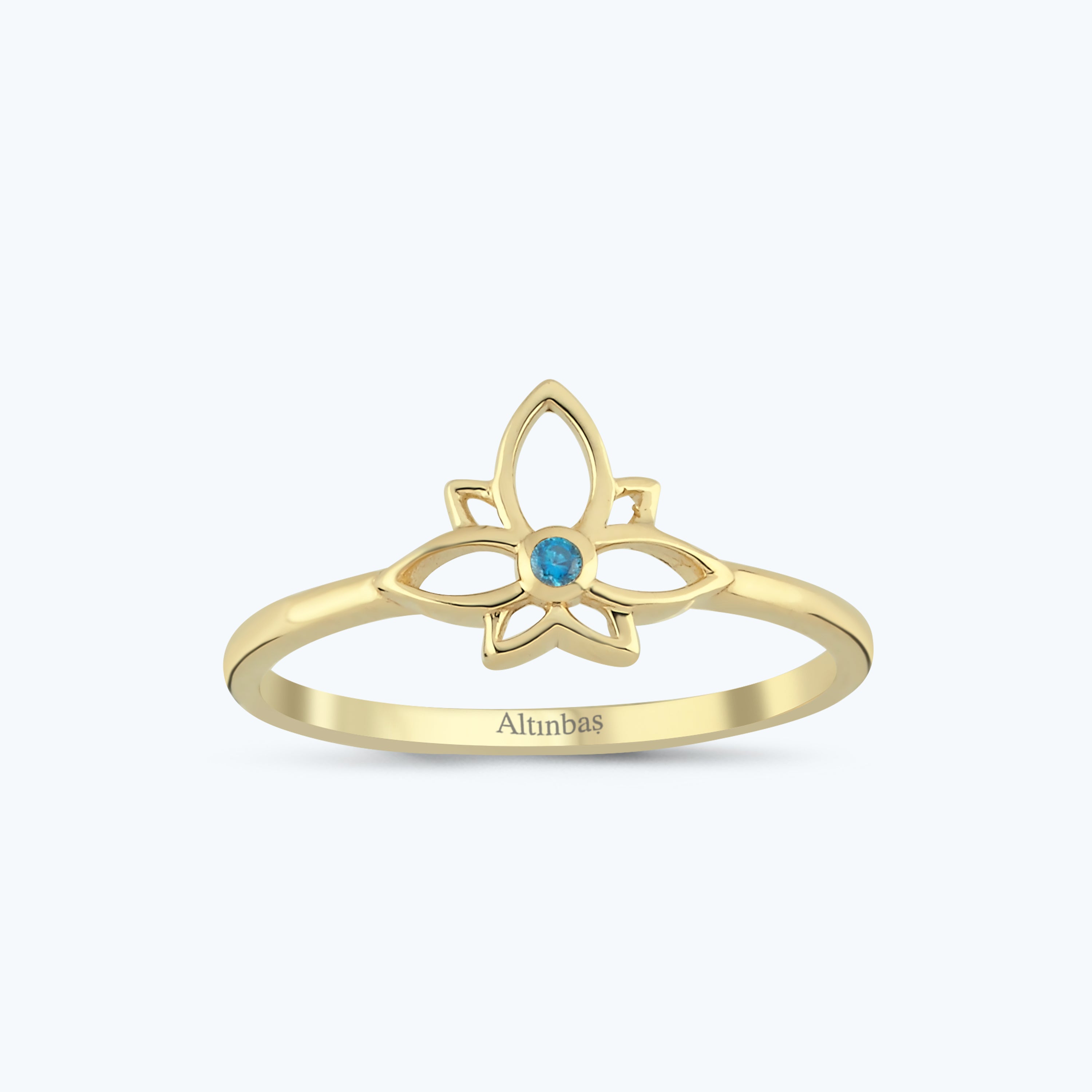 Homepage > Cubic Zirconia > Gold Blue Stone Lotus Ring