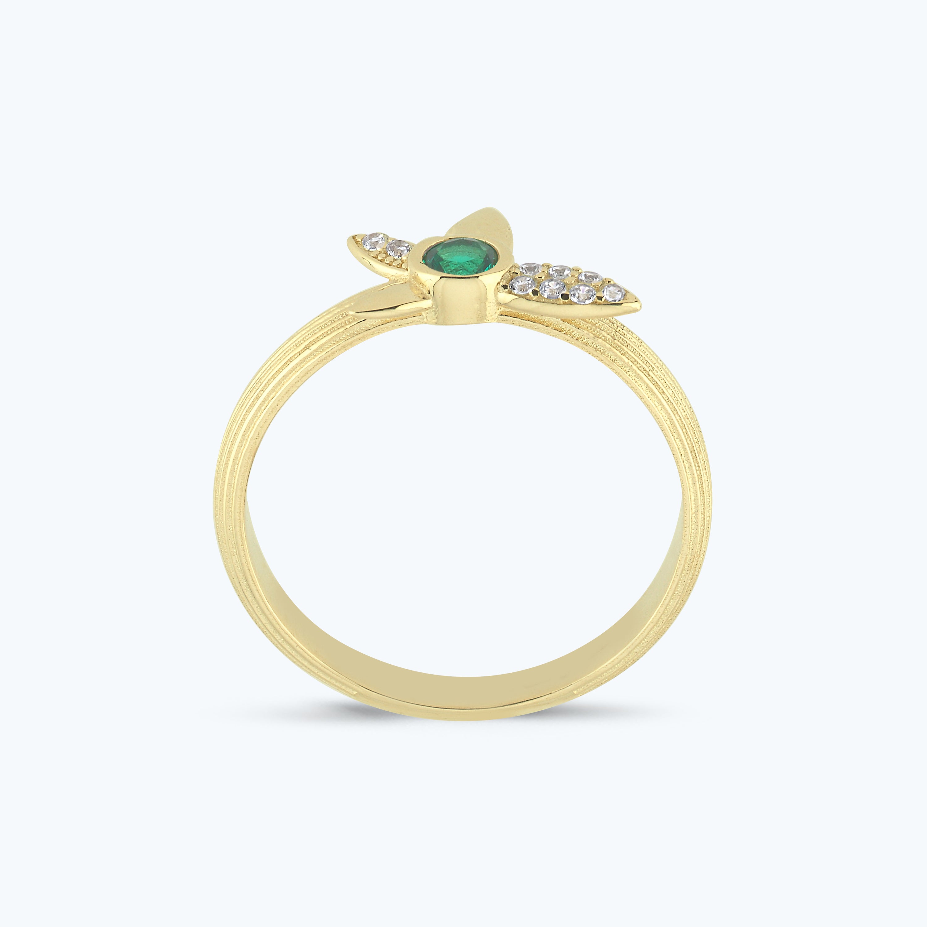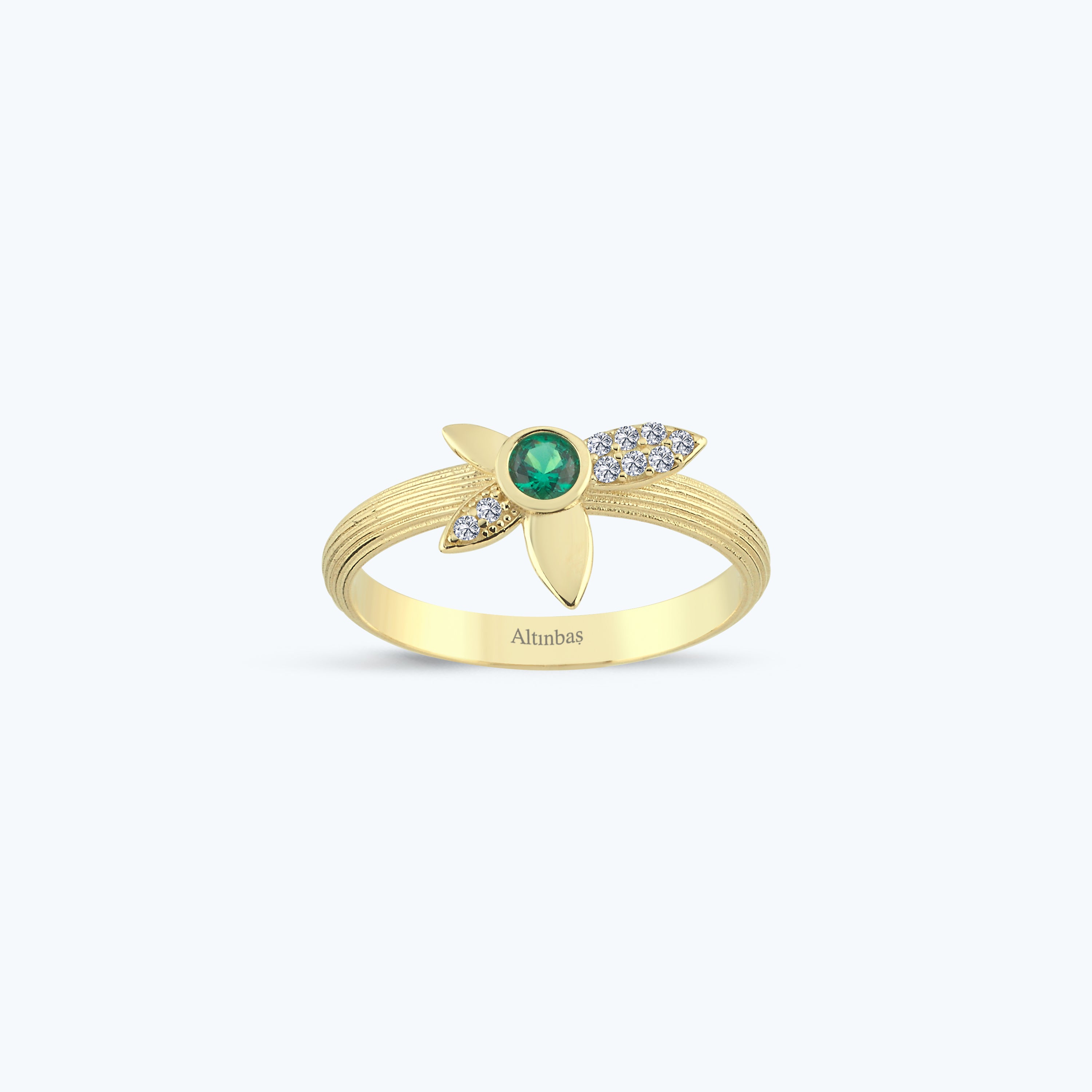 Homepage > Cubic Zirconia > Flower Gold Ring with Green Stone