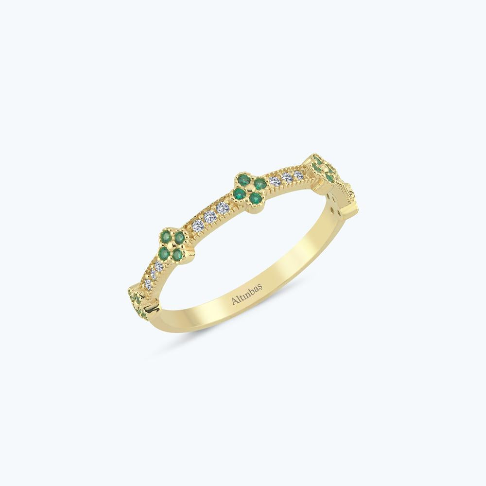 Flower Gold Ring with Green Gemstone