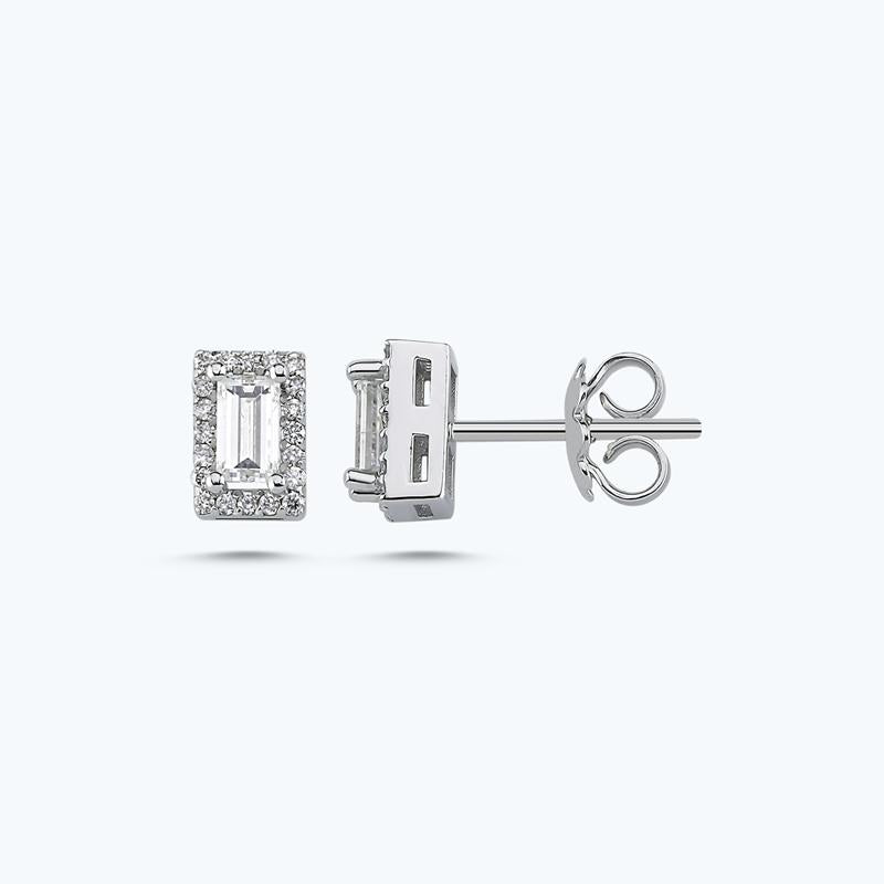 Introducing Altınbaş Jewelry's Baguette Diamond Earrings, a magnificent blend of elegance and sophistication that is designed for the modern woman. These earrings are meticulously crafted from 14K white gold, adding a touch of luxury to any outfit. The use of white gold ensures durability and longevity, making these earrings a worthwhile investment. The highlight of these earrings is the baguette-cut diamonds, known for their unique and elongated rectangular shape. Each diamond is cut with precision, reflecting light in a way that enhances its brilliance and sparkle. The diamonds are of H color category, ensuring a near colorless appearance that enhances their visual appeal. The VS clarity grade of the diamonds denotes very slight inclusions that are not visible to the naked eye, ensuring that your diamonds look flawless. These earrings are more than just a fashion accessory; they are a harbinger of good fortune. In many cultures, diamonds are considered to bring good luck and prosperity. Wearing these earrings not only elevates your style but also brings positive energy into your life. The harmony of beauty and style is evident in these earrings. The sleek design of the baguette diamonds paired with the lustrous white gold creates a stunning visual effect. These earrings are versatile and can be paired with both casual and formal outfits, making them a must-have in your jewelry collection. Altınbaş Jewelry believes in creating pieces that resonate with the wearer's personality. These Baguette Diamond Earrings are a testament to that belief. They are designed for the woman who is confident, stylish, and values quality. These earrings are not just jewelry; they are a statement of your unique style and taste. Choose Altınbaş Jewelry's Baguette Diamond Earrings and experience the perfect blend of luxury and style.