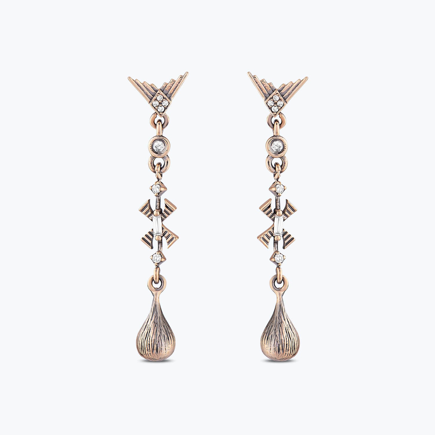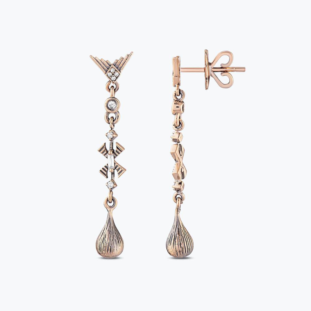 Introducing Altınbaş Jewelry's Baguette Diamond Earrings, a magnificent embodiment of pure luxury and sophistication. These earrings are meticulously crafted from 14K pink gold, a material known for its durability and timeless allure. The pink gold radiates a warm glow, symbolizing affection and inner peace. Each earring features a stunning baguette diamond, a unique cut that exudes an unparalleled sparkle. As the light catches these diamonds, they will illuminate your features with an enchanting radiance. These diamonds are not just stones; they are a symbol of a love that is everlasting, making these earrings an ideal gift for someone special. The dangle design of these earrings adds a touch of elegance and movement. As they sway with your every step, they will catch the light and reflect it beautifully, enhancing your natural beauty. The rose tone of the gold complements the diamonds perfectly, creating a harmonious blend of sparkle and warmth. These earrings are not just accessories; they are a statement of style and sophistication. They are perfect for women who appreciate the finer things in life and are not afraid to showcase their elegant taste. In a world where trends come and go, these Baguette Diamond Earrings will remain a classic staple in your jewelry collection. With Altınbaş Jewelry, you are not just purchasing a product; you are investing in a piece of art that will last a lifetime.