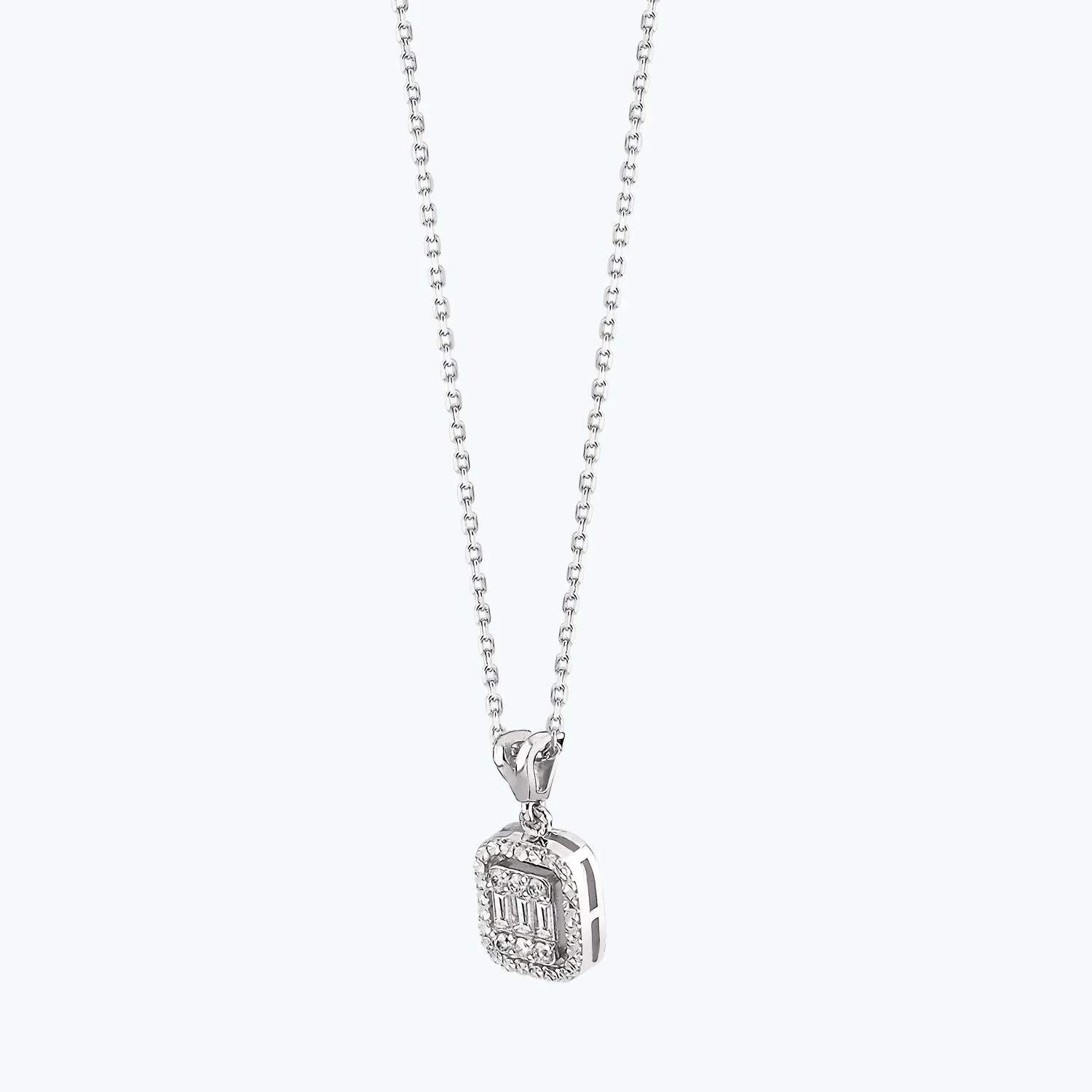 Indulge in the timeless elegance of Altınbaş Jewelry with our exquisite Baguette Diamond Necklace. This stunning piece is expertly crafted from 8K white gold, a material renowned for its lasting beauty and durability. The centerpiece of this necklace is a spectacular baguette diamond, a gemstone that is cherished for its unique shape and brilliant shine. The Baguette Diamond Necklace is part of our exclusive Wedding Collection, making it an ideal choice for brides seeking a touch of classic luxury on their special day. However, its versatile design also makes it suitable for any occasion where you want to add a touch of sophistication to your ensemble. This necklace is more than just a piece of jewelry; it's a symbol of divine and royal power. It reflects the inner shine that makes you uniquely you. The perfect balance of shine and subtlety in this necklace makes it a true masterpiece that complements your style and personality. The Baguette Diamond Necklace is also a representation of love and respect. It's a thoughtful gift for the special woman in your life, whether she's your partner, mother, sister, or friend. It's a way to show her how much you value her and appreciate her presence in your life. With Altınbaş Jewelry, you're not just buying a piece of jewelry; you're investing in a lasting symbol of love, respect, and personal style. The Baguette Diamond Necklace is a testament to our commitment to quality and sophistication in every piece we create. Wear it with pride, knowing that it's a reflection of your inner shine and royal power.