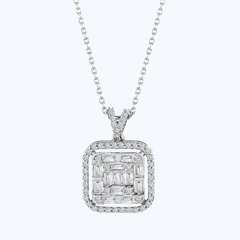 Introducing the Baguette Diamond Necklace from Altınbaş Jewelry, the epitome of sophistication and quality. This exquisite piece is crafted with meticulous attention to detail, making it a testament to the manifestation of wealth and prestige. This necklace is made from 14K white gold, a material renowned for its durability and timeless allure. The white gold creates a perfect backdrop for the diamonds, enhancing their shine while maintaining a balance of subtlety. This piece is not just a piece of jewelry, it is a statement of elegance and class. The centerpiece of this necklace is its stunning baguette diamond. The baguette cut is known for its step-like facets and rectangular shape, which allows for a unique display of the diamond's clarity. The G-grade diamond is meticulously set to ensure the maximum amount of light is reflected, resulting in an unparalleled sparkle. This necklace is designed to accentuate your natural beauty. The diamonds catch the light with every movement, drawing attention to your neck and adding a touch of glamour to any outfit. It's versatile enough to be worn with a casual outfit for a touch of sophistication, or with a formal dress for an elegant look. The Baguette Diamond Necklace is not just a piece of jewelry, it's a testament to your refined taste and the value you place on quality and style. It's more than just a purchase, it's an investment in yourself and a symbol of your success. Designed for women who appreciate the finer things in life, this necklace is the perfect gift for yourself or a loved one. It's a piece that will be treasured for years to come and can be passed down through generations, making it not just a piece of jewelry, but a family heirloom. Altınbaş Jewelry is committed to providing you with pieces that are not only beautiful but also of the highest quality. With this Baguette Diamond Necklace, you're not just buying a piece of jewelry, you're investing in a piece of art.