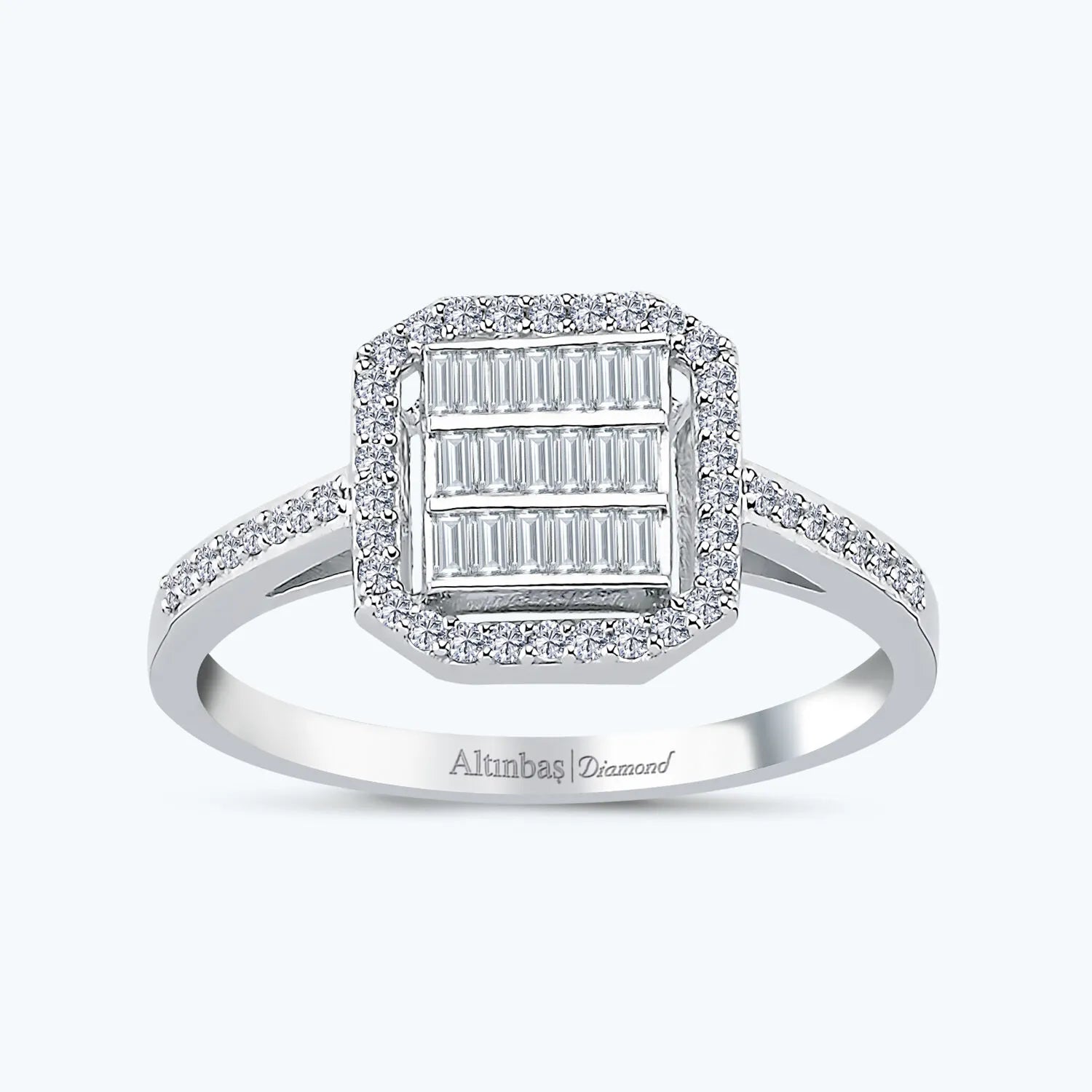 Introducing the Baguette Diamond Ring from Altınbaş Jewelry, an embodiment of sophistication and quality. This stunning piece is more than just an accessory; it's a treasure of exquisite beauty that perfectly complements the most important step of your life. Expertly crafted from 14K white gold, this ring is designed to reflect the brilliance of the sun, adding an elegant sparkle to your everyday style. The centerpiece of this ring is the baguette diamond, a gem known for its unique rectangular shape and step-like facets. This diamond cut is renowned for its ability to reflect light in a way that highlights its clarity, creating a dazzling display of sparkle and shine. The baguette diamond is flanked by side stones, enhancing the ring's radiance and adding to its overall allure. Designed for women who appreciate the finer things in life, this engagement ring is more than a piece of jewelry. It's an eternal symbol of love and commitment, designed to be as enduring as your love story. The 14K white gold setting offers a timeless appeal, while the diamonds add a touch of modern elegance. This combination creates a ring that is both classic and contemporary, making it a perfect choice for today's bride. Whether you're planning a proposal or looking to celebrate a significant milestone, the Baguette Diamond Ring from Altınbaş Jewelry is the perfect choice. Its radiant beauty, combined with its high-quality craftsmanship, makes it a piece that will be treasured for a lifetime. Choose this ring to express your love and commitment in the most beautiful way possible.