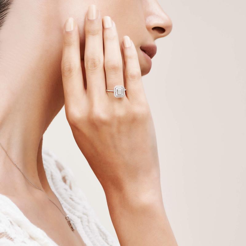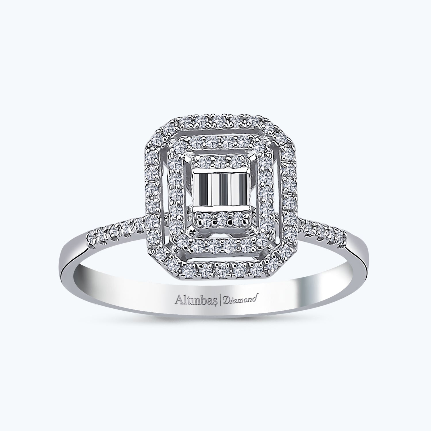 Experience the captivating allure of gold with this stunning Baguette Diamond Ring from Altınbaş Jewelry. Crafted with the utmost sophistication and quality, this luxurious piece is more than just a ring - it's a symbol of love, commitment, and the rhythm of your heart. This ring is made from 8K white gold, a material that embodies grace and style in every aspect. The radiant white gold beautifully reflects the brilliance of the sun, adding a touch of nature's enchanting magic to the overall design. The gold setting also provides a stunning backdrop for the diamonds, enhancing their sparkle and magnificence. At the heart of this ring is an emerald cut diamond, a gem that is known for its unique and captivating beauty. The diamond is set in a baguette style, a design that is both timeless and elegant. This style not only highlights the diamond's brilliance but also its exquisite cut and clarity. Adding to the ring's allure are the side stones. These diamonds, carefully selected for their quality and sparkle, add an extra layer of radiance to the ring. They perfectly complement the main diamond, creating a harmonious blend of sparkle and shine. This engagement ring is designed for women who appreciate the finer things in life. It's a piece that not only symbolizes a promise of love but also reflects the wearer's unique style and personality. It's a ring that's meant to be cherished, just like the love it represents. In every aspect, this Baguette Diamond Ring from Altınbaş Jewelry is a testament to luxury, sophistication, and the captivating allure of gold. It's a piece that will surely make any woman feel special and loved.