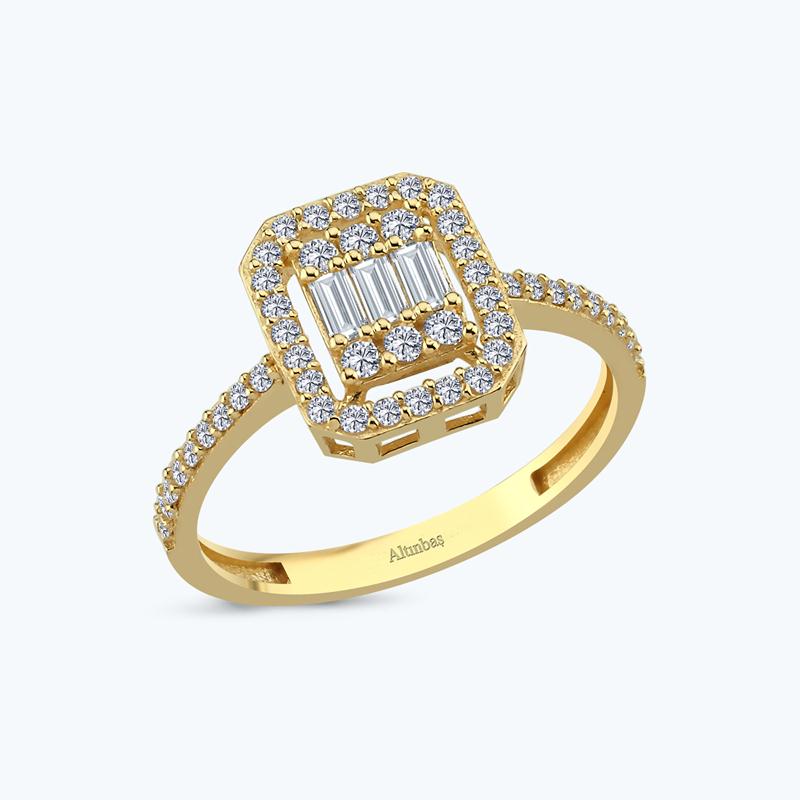 Introducing the Baguette Gold Ring, a unique piece from the renowned Altınbaş Jewelry collection. Crafted with utmost attention to detail, this exquisite ring is an epitome of sophistication and quality that Altınbaş embodies. Made from 14K yellow gold, this ring radiates a warm, rich glow that complements all skin tones. The gold construction not only adds a luxurious touch to the piece but also signifies strength and resilience, making it a perfect symbol of enduring beauty and power. The ring features a baguette design, a style that has been cherished in the jewelry world for its simplicity and elegance. This design, combined with the lustrous gold, creates a timeless piece that can be passed down through generations. Adding to its allure, the ring is adorned with cubic zirconia stones. These stones, known for their brilliant sparkle, enhance the ring's overall elegance and make it a standout piece in any jewelry collection. This Baguette Gold Ring makes a perfect Mother's Day gift. It's more than just a piece of jewelry; it's a token of love, appreciation, and respect for the woman who embodies strength and resilience in your life. With Altınbaş, you're not just purchasing a piece of jewelry; you're investing in a legacy of luxury and quality. This Baguette Gold Ring is a testament to that legacy.