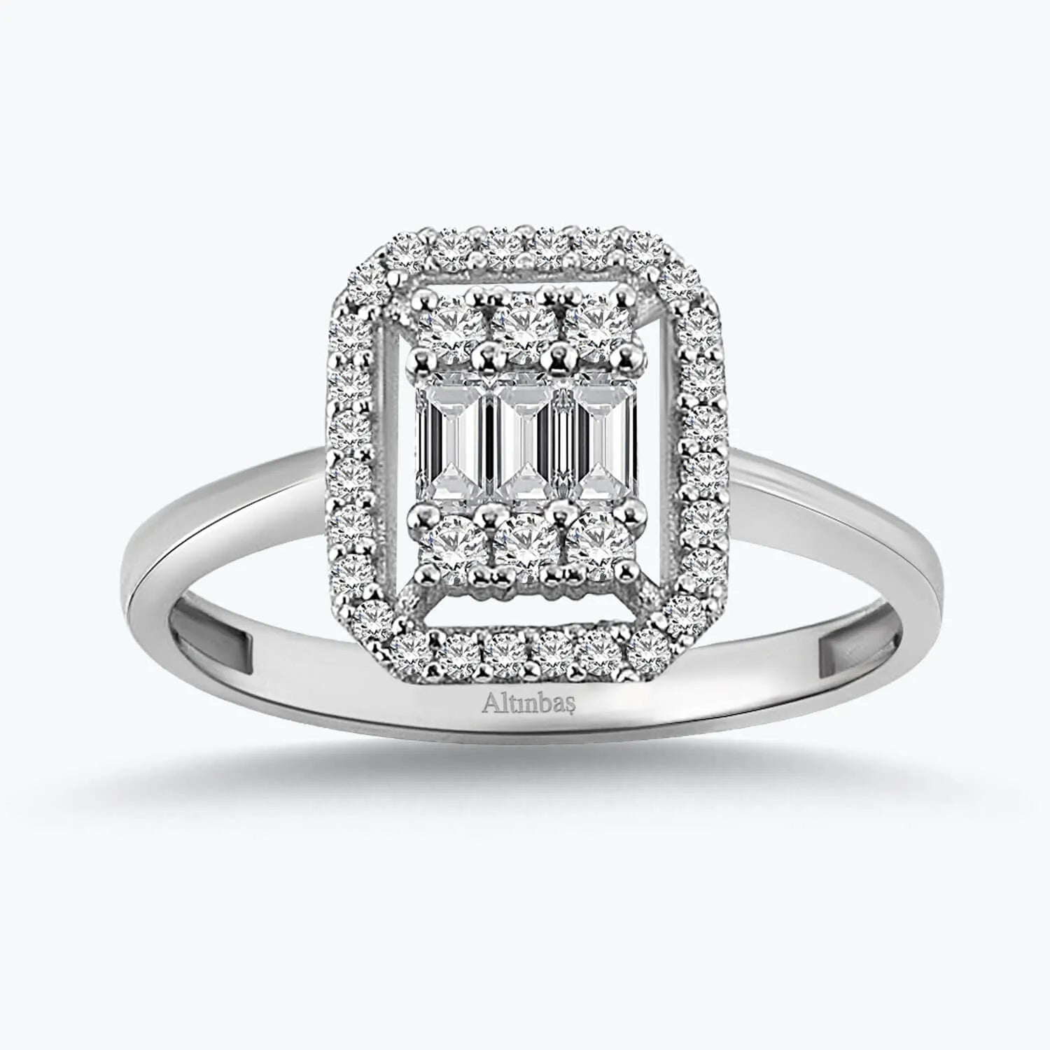 Introducing the Baguette Gold Ring, an exquisite piece from Altınbaş Jewelry that is an embodiment of sophistication and quality. Crafted meticulously with 14K white gold, this ring is a testament to the refined taste of those who wear it. The radiant cubic zirconia, cut in a baguette style, is the centerpiece of this magnificent piece, bringing a touch of class and elegance to any ensemble. The Baguette Gold Ring is more than just a piece of jewelry; it's a symbol of a lifetime memorable moment. Whether it's an engagement, an anniversary, or a special gift, this ring is designed to capture and celebrate these precious moments in the most beautiful way. It's a piece that tells a story of love, commitment, and joy. This ring is bold and assertive, designed for the woman who knows what she wants and isn't afraid to show it. Its sleek design and sparkling cubic zirconia make a statement without saying a word, reflecting the confidence and strength of its wearer. The Baguette Gold Ring is not just a ring; it's a depiction of richness and class. The gleaming 14K white gold band and the shimmering cubic zirconia gemstone are a testament to the luxury and quality that Altınbaş Jewelry is known for. This ring is the epitome of refined taste, designed for the woman who appreciates the finer things in life. It's a piece that will not only enhance her beauty but also reflect her elegance and sophistication. With the Baguette Gold Ring, every moment becomes a memorable one, every memory a cherished treasure. Choose Altınbaş Jewelry's Baguette Gold Ring and make your special moments even more unforgettable.