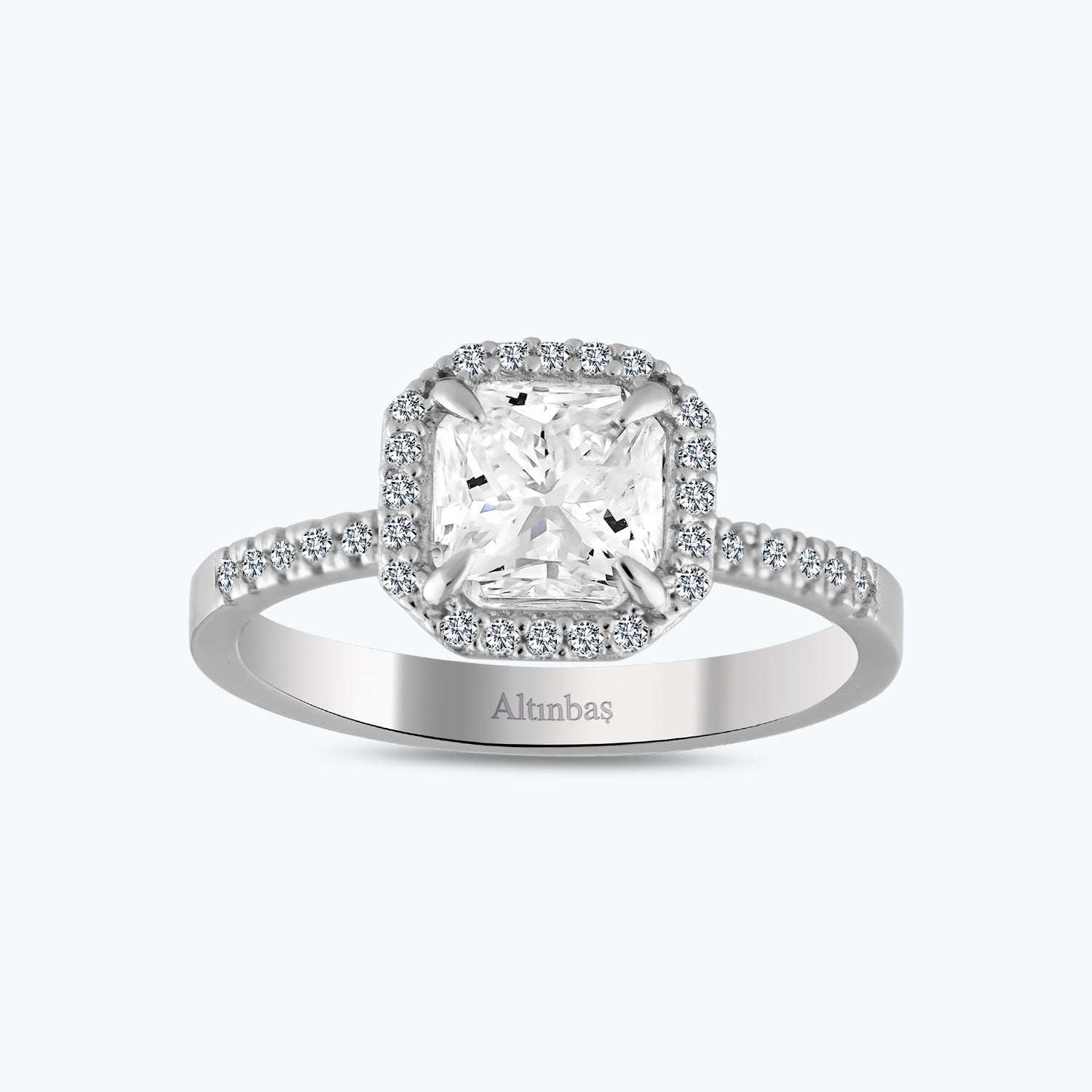 Discover the unparalleled allure of the Baguette Gold Ring from Altınbaş Jewelry. This exquisite piece is meticulously crafted from 14K white gold, a metal known for its timeless elegance and enduring strength. The ring's design is accentuated by a stunning cushion-cut cubic zirconia at its center, a gemstone that exudes a radiant sparkle akin to a diamond. The cubic zirconia is flanked by baguette-cut side stones, adding a touch of contemporary sophistication to this classic design. Each stone is carefully selected and set, ensuring a flawless finish that speaks volumes about the meticulous attention to detail that goes into each Altınbaş piece. This ring is more than just a piece of jewelry. It's a symbol of infinite love, a testament to the eternal bond between two people. It's a reminder of the prosperity and success that love brings, a tangible representation of the wealth of emotions that come with a committed relationship. The Baguette Gold Ring is not just an engagement ring, it's an eternal symbol of love and commitment. It's a piece that tells a story of love that transcends time and space, a story that's as unique as the woman who wears it. Crafted for women who appreciate the finer things in life, this ring is an embodiment of luxury and elegance. It's a piece that's meant to be cherished, a piece that becomes a part of your story, a part of you. Experience the magic of Altınbaş Jewelry with the Baguette Gold Ring. It's more than just a ring. It's a promise of love, a promise of forever.