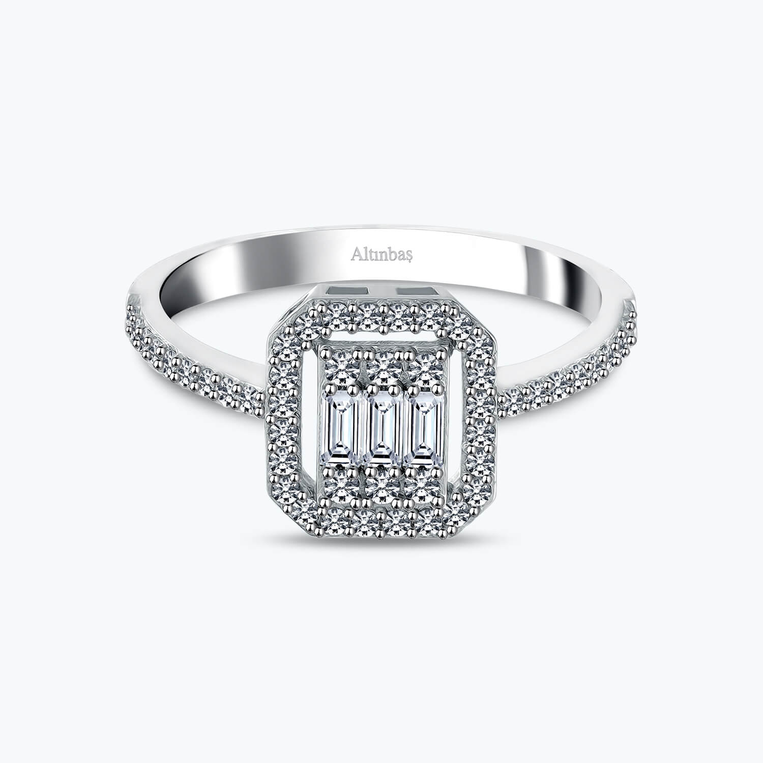 Introducing the Baguette Gold Ring from Altınbaş Jewelry, a symbol of sophistication, quality, and timeless elegance. This exquisite piece is meticulously crafted from 14K white gold, a metal known for its durability and long-lasting shine. The use of white gold adds a contemporary twist to the classic gold ring, making it a perfect choice for the modern, stylish woman. The ring features a striking Baguette-cut cubic zirconia as the centerpiece, a gemstone that is celebrated for its brilliance and fire. The Baguette cut is known for its clean lines and simplicity, a testament to the power of understated elegance. This is a ring that doesn't need to shout to be heard; its beauty speaks volumes in a whisper. Adding to the allure of this ring are the side stones that enhance the overall sparkle. These cubic zirconia side stones are carefully selected for their quality and are meticulously set to ensure they complement the central stone perfectly. This thoughtful design detail adds a touch of opulence to the ring, making it even more special. This Baguette Gold Ring is not just a piece of jewelry; it's a harbinger of good fortune. It's the perfect way to enhance the value of special moments, whether it's an anniversary, a birthday, or an engagement. Gifting this ring signifies a promise of love and commitment, making it a memorable token of affection. In the world of Altınbaş Jewelry, every piece tells a story. This Baguette Gold Ring is a story of love, celebration, and the power of simplicity. It's a story waiting to be part of your life.