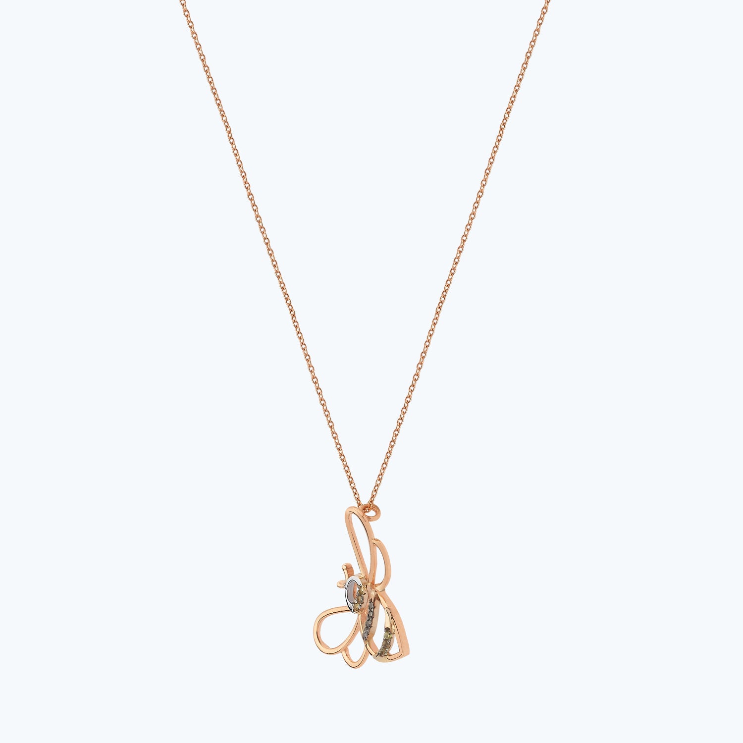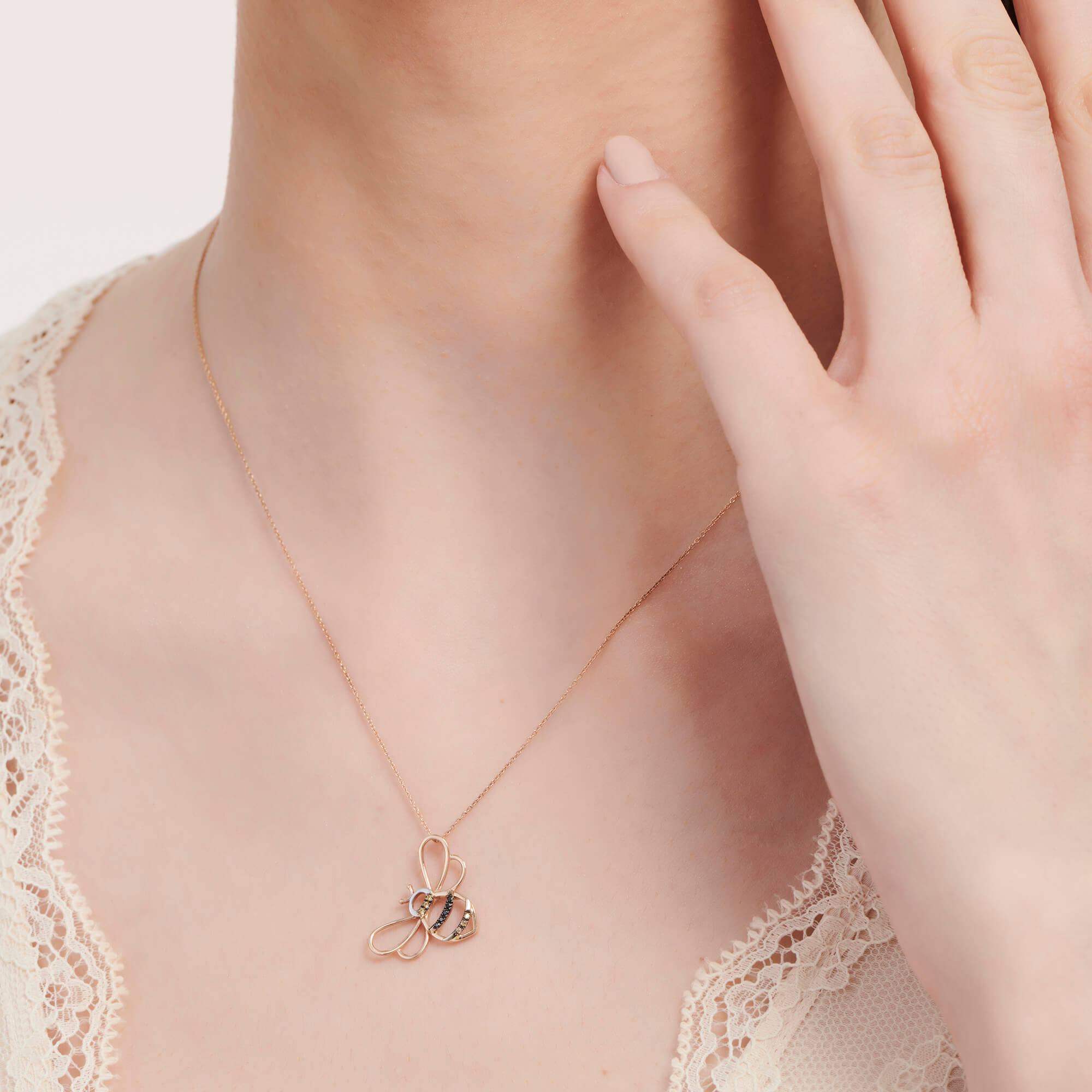 Introducing the Bee Diamond Necklace from Altınbaş Jewelry, a piece that truly embodies sophistication and charm. This exquisite necklace is more than just an accessory; it's an ode to the joy of life and a symbol of the sweetness of love. Crafted with meticulous attention to detail, this necklace is made from 14K rose gold, a hue that brings a touch of warmth and femininity to any outfit. The rose gold setting beautifully complements the round diamonds, creating a harmonious balance of style that is both captivating and timeless. The centerpiece of this necklace is a charming bee design, adorned with sparkling diamonds. The bee, a symbol of industriousness and community, adds a unique and meaningful touch to this piece. The diamonds, carefully selected for their brilliance, add a touch of elegance and sophistication that is unmistakably Altınbaş. Despite its luxurious appeal, this necklace is designed with comfort and practicality in mind. Its lightweight design and adjustable chain allow for a perfect fit, ensuring you can wear this piece with ease from day to night. Whether you're buying for yourself or as a gift, this Bee Diamond Necklace is more than just jewelry. It's a statement of style, a symbol of love, and a celebration of life. With its stunning design and meaningful symbolism, this necklace is sure to bring a touch of sweetness to any occasion. Experience the luxury, sophistication, and charm of Altınbaş Jewelry with this exquisite Bee Diamond Necklace. This piece is not just a necklace; it's a testament to the joy of life and the sweetness of love.