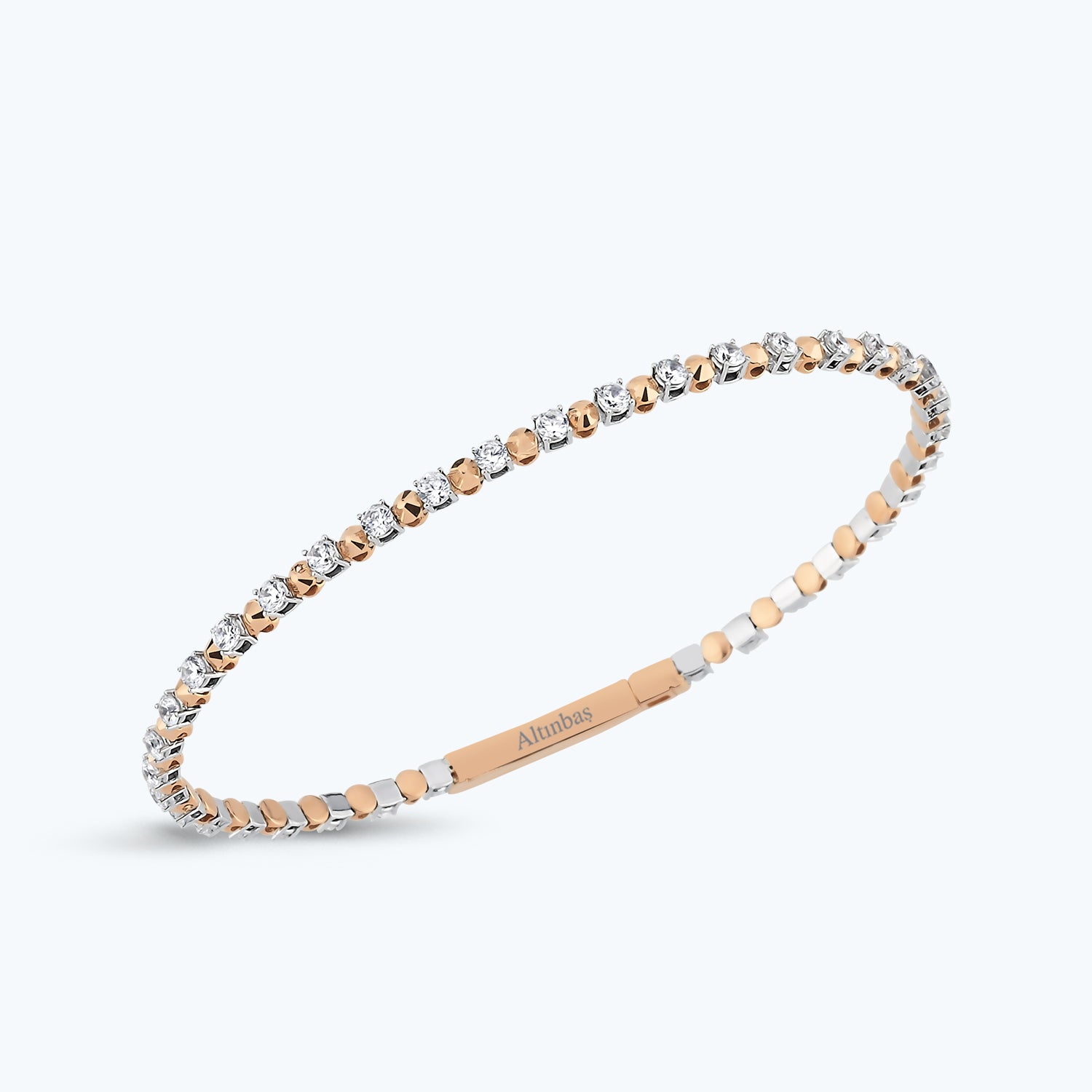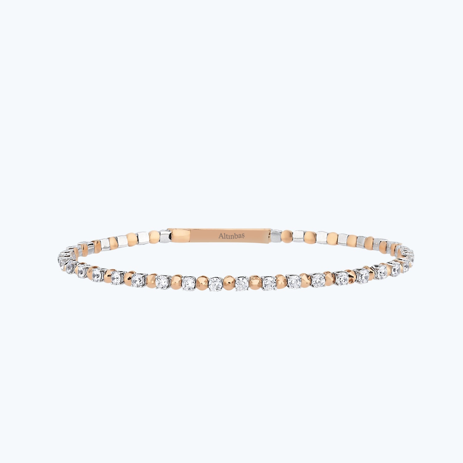 Indulge in the opulence of Altınbaş Jewelry with our 14K Pink-White Gold Bracelet, a true manifestation of tenderness and care. This exquisitely crafted piece is designed to elevate your everyday elegance, transforming even the most ordinary moments into extraordinary ones. Made from 14K gold, this bracelet is not just an accessory, but a testament to the richness and class that you embody. The pink-white hue of the gold adds a unique touch, setting you apart from the crowd with its distinctive charm. The bracelet is adorned with White Cubic Zirconia stones, known for their brilliant sparkle and durability. These stones add a dazzling touch to the bracelet, making it a standout piece in your jewelry collection. Each stone is meticulously set, reflecting Altınbaş's commitment to delivering only the highest quality jewelry. The bracelet's design is a perfect blend of modern and classic styles, making it suitable for a variety of occasions. Whether you're dressing up for a special event or simply want to add a touch of luxury to your everyday attire, this bracelet is the perfect choice. With this bracelet, you're not just wearing a piece of jewelry - you're wearing a symbol of sophistication and quality that Altınbaş Jewelry is renowned for. It's more than just a purchase, it's an investment in timeless style and elegance. Experience the luxury and sophistication of Altınbaş Jewelry with this Gold Bracelet. It's not just a piece of jewelry, it's a statement of your unique style and taste.