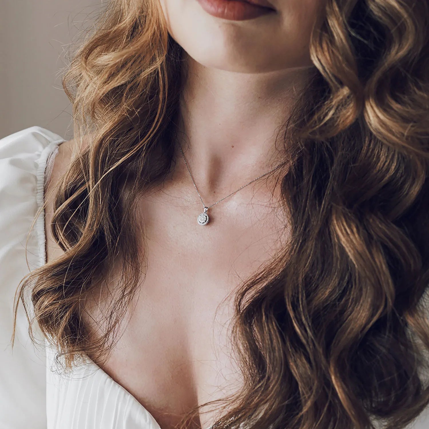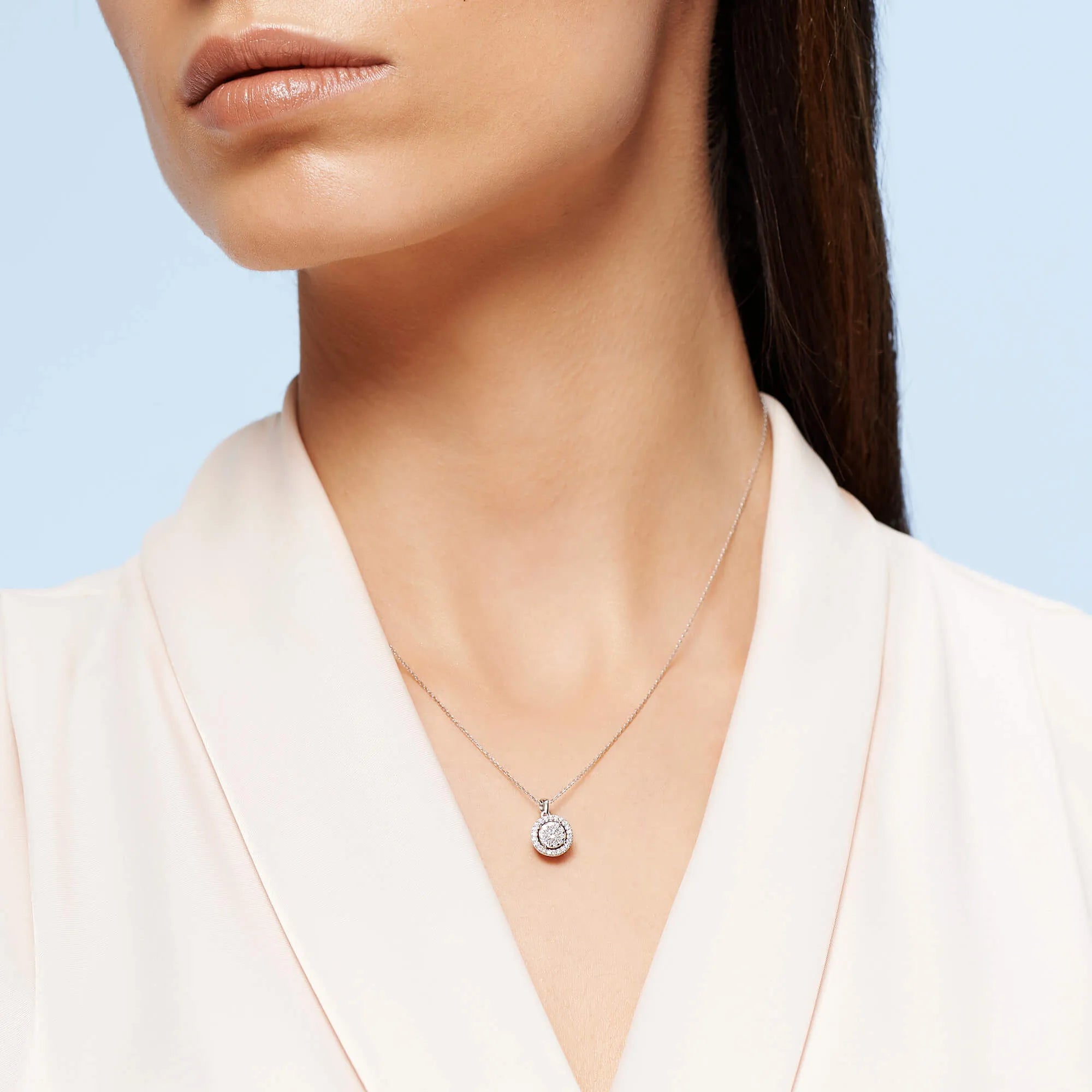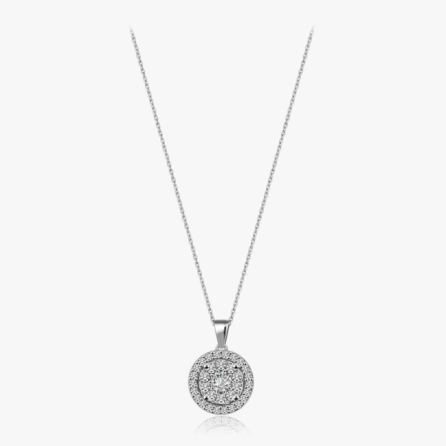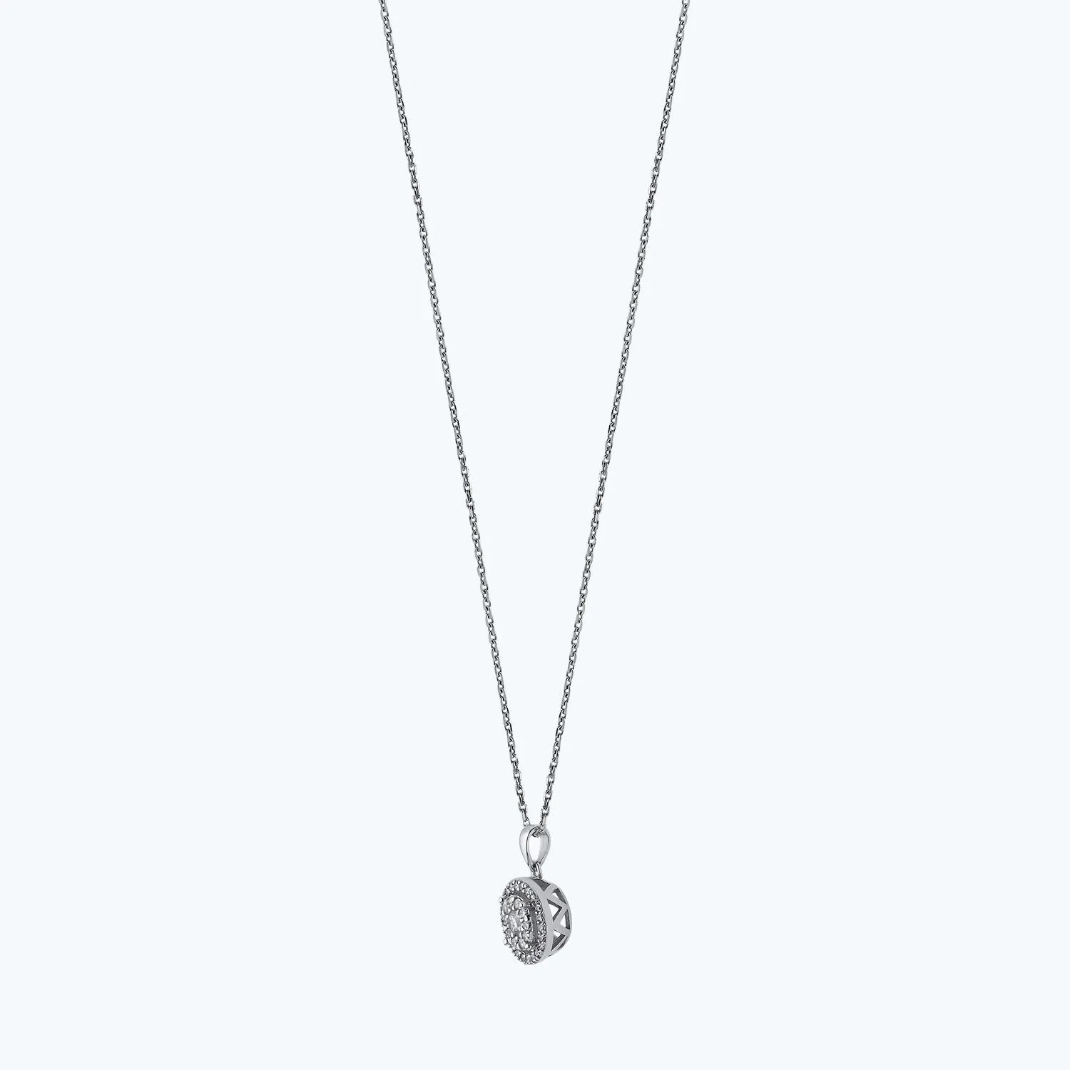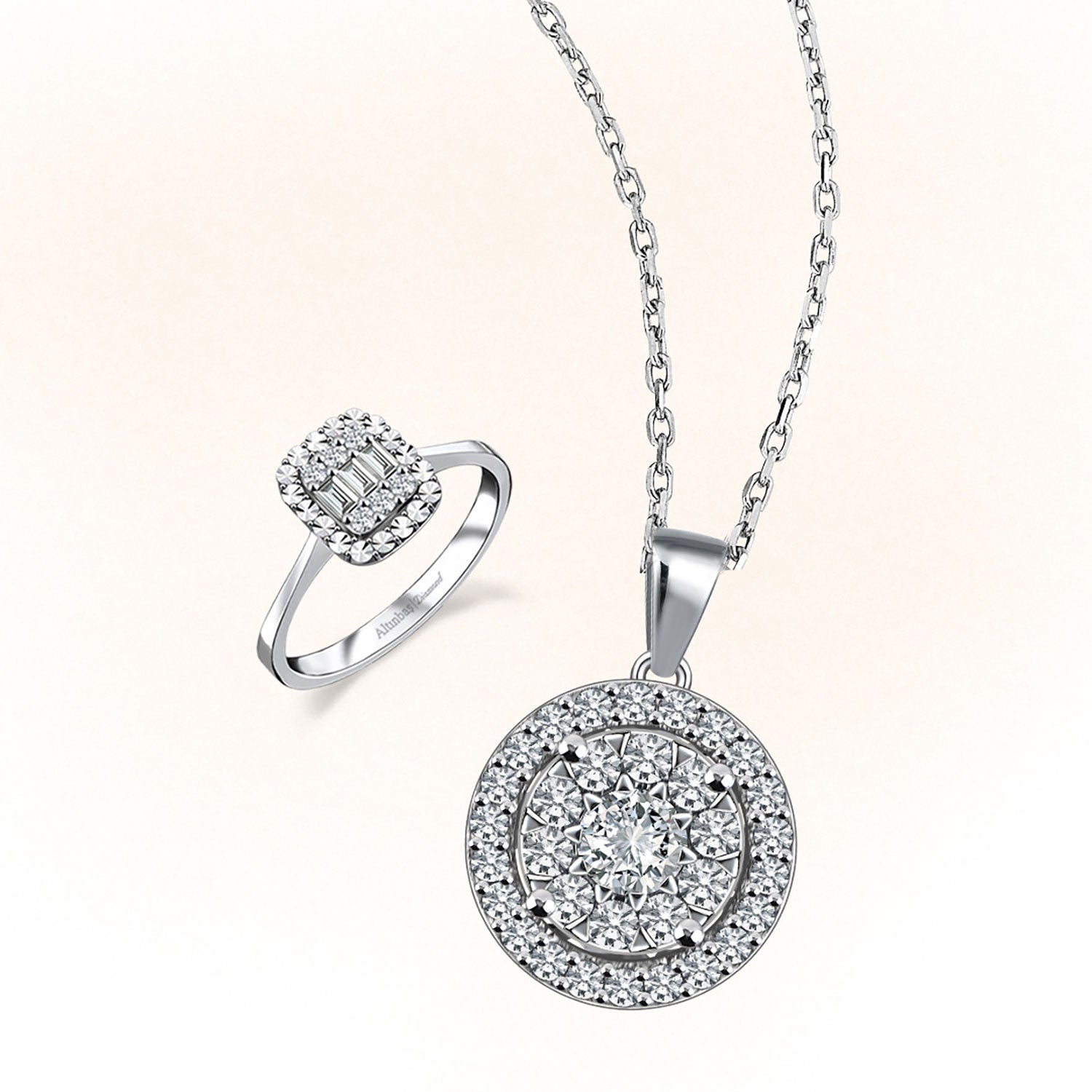 Introducing the Bouquet Diamond Necklace from Altınbaş Jewelry, a piece that truly captures the essence of sophistication and quality. This necklace is a treasure that lasts forever, embodying the charm of gold that never fades. Crafted from lustrous 8K white gold, its beauty is timeless, making it the perfect piece to pass down through generations. The necklace features a round pendant, designed with a unique illusion setting. This setting allows the diamonds to appear larger and more brilliant, adding an extra touch of sparkle to your ensemble. The diamonds are of G color, ensuring a stunning white sparkle that enhances the overall elegance of this piece. The Bouquet Diamond Necklace is a circle of everlasting love, making it the perfect gift for anniversaries. With this necklace, you're not just gifting a piece of jewelry, but a signature of eternal commitment. It's a testament to the enduring bond between you and your loved one. This necklace is specifically designed for women who appreciate the finer things in life. The round pendant design adds a touch of elegance and sophistication to any outfit, making it suitable for both everyday wear and special occasions. Experience the lustrous beauty that never fades with the Bouquet Diamond Necklace. With its timeless design and superior quality, this necklace from Altınbaş Jewelry is more than just a piece of jewelry, it's a symbol of everlasting love and commitment.