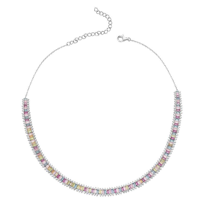 Homepage Jewelry > Necklaces > Colored Stone Silver Necklace