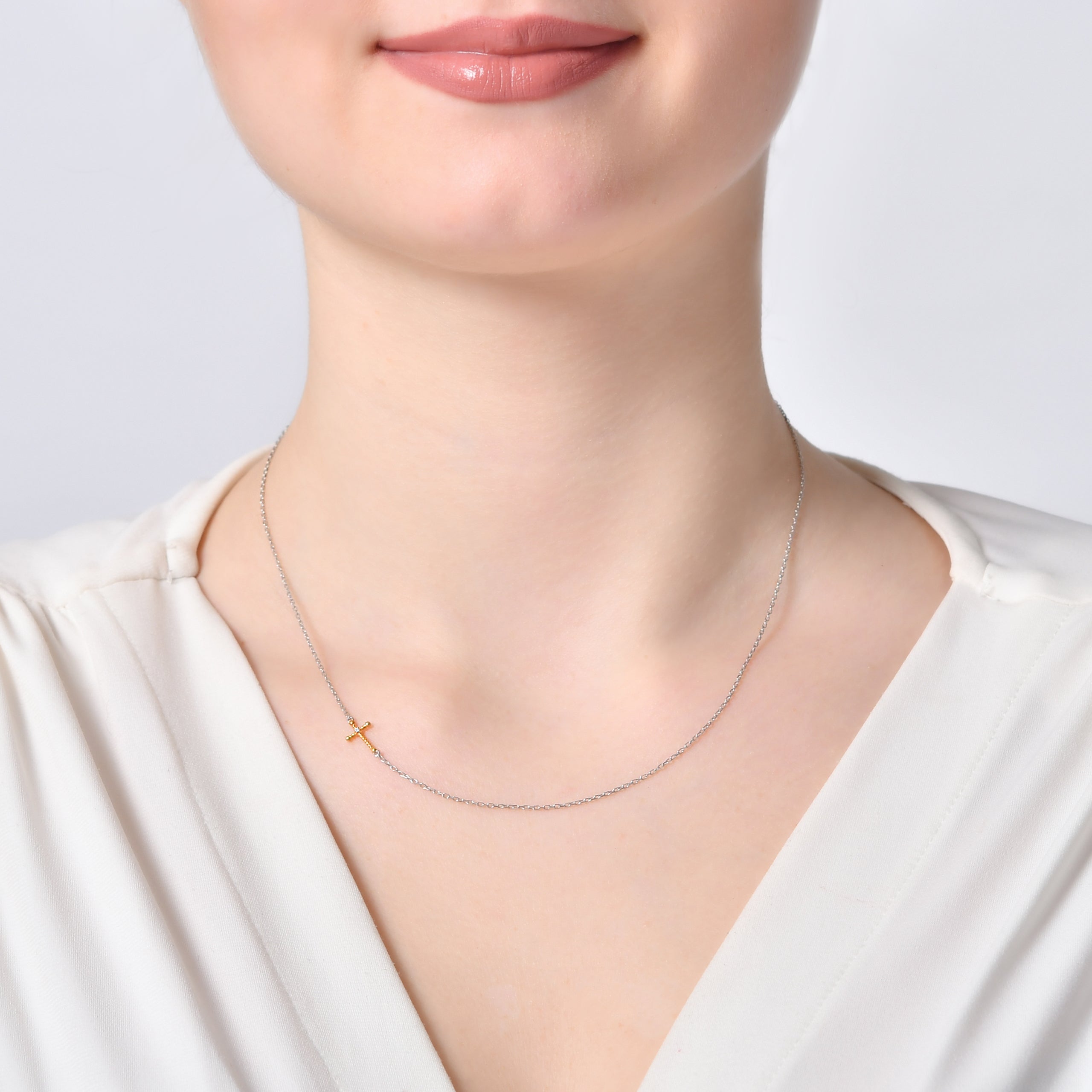 Experience the perfect blend of sophistication and spirituality with Altınbaş' Cross Silver Diamond Necklace. This stunning piece is not just an accessory, but an emblem of faith, meticulously crafted for women who take pride in their beliefs. The necklace is adorned with sparkling round diamonds, meticulously placed to create a perfect symmetry of design. These diamonds are not just stones; they are symbols of purity and strength, reflecting radiant light, just like your unwavering faith. Crafted from high-quality silver, this necklace exudes a timeless elegance. Silver is not only durable but also versatile, making this necklace a perfect addition to any outfit, from casual daywear to elegant evening attire. The centerpiece of this necklace is the cross pendant, a universal symbol of faith and devotion. It's masterfully crafted to create a sacred bond between you and your spiritual beliefs. The diamonds on the cross further enhance its beauty, making it a true masterpiece. This necklace is more than just a piece of jewelry; it's a statement of faith, a testament to your spiritual journey. It's designed to not only enhance your physical beauty but also to resonate with your inner strength and spirituality. Altınbaş' Cross Silver Diamond Necklace is more than just a piece of jewelry; it's a symbol of faith, a reflection of your inner strength and spirituality. Wear it proudly, and let it serve as a constant reminder of your beliefs and values.