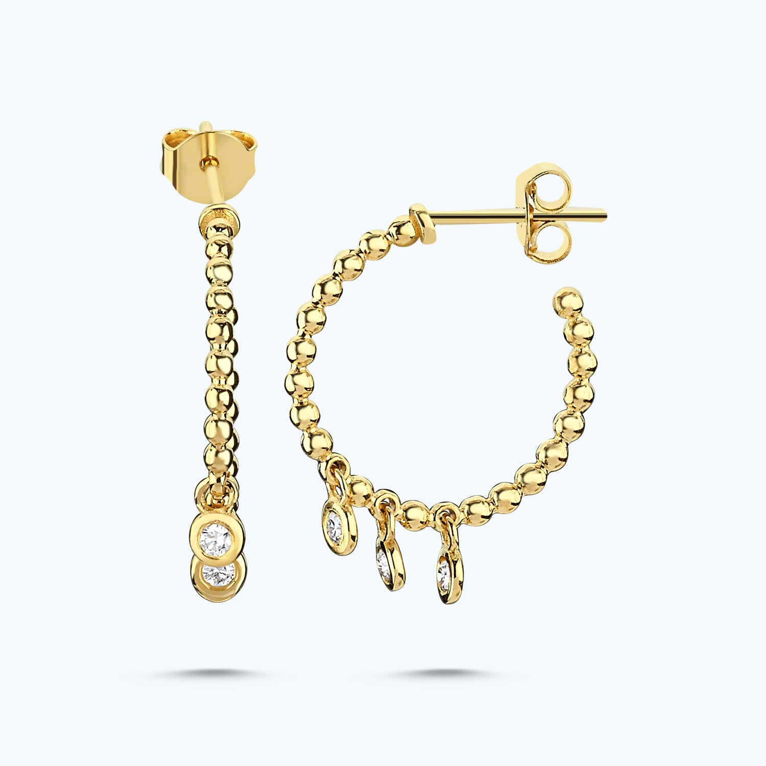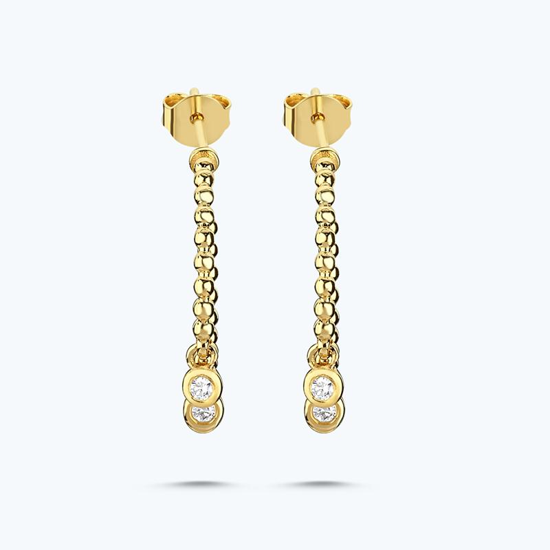 Introducing Altınbaş Jewelry's exquisite Diamond Earrings, a true testament to the purity of the heart and an uninterrupted flow of grace. Crafted with an exceptional eye for detail, these earrings are a perfect blend of elegance and sophistication, designed to make you stand out in any setting. Each earring is meticulously crafted from 14K gold, a metal known for its lustrous shine and durability, ensuring that these earrings will remain a cherished part of your jewelry collection for years to come. The gold setting provides a stunning contrast to the green diamonds, creating a captivating interplay of colors that is sure to catch the eye. The diamonds, cut in a classic round shape, are the epitome of timeless elegance. They add a touch of sparkle and luxury to these earrings, making them a perfect choice for those who appreciate the finer things in life. The green hue of the diamonds is not just strikingly beautiful but also unique, making these earrings a standout piece in any jewelry collection. Each diamond is carefully selected for its color, cut, and clarity, ensuring that you are getting a piece of jewelry that is truly exceptional. These earrings are not just accessories; they are a symbol of the purity of the heart, reflecting the inner beauty of the wearer. They embody an uninterrupted flow of grace, adding a touch of elegance and sophistication to any outfit. Whether you're wearing them to a formal event or just adding a touch of glamour to your everyday look, these Diamond Earrings from Altınbaş Jewelry are sure to make a statement. They are a perfect gift for yourself or a loved one, a tangible expression of love and admiration. Experience the luxury and sophistication of Altınbaş Jewelry with these exquisite Diamond Earrings. Their exceptional design and unparalleled quality make them a must-have addition to your jewelry collection.
