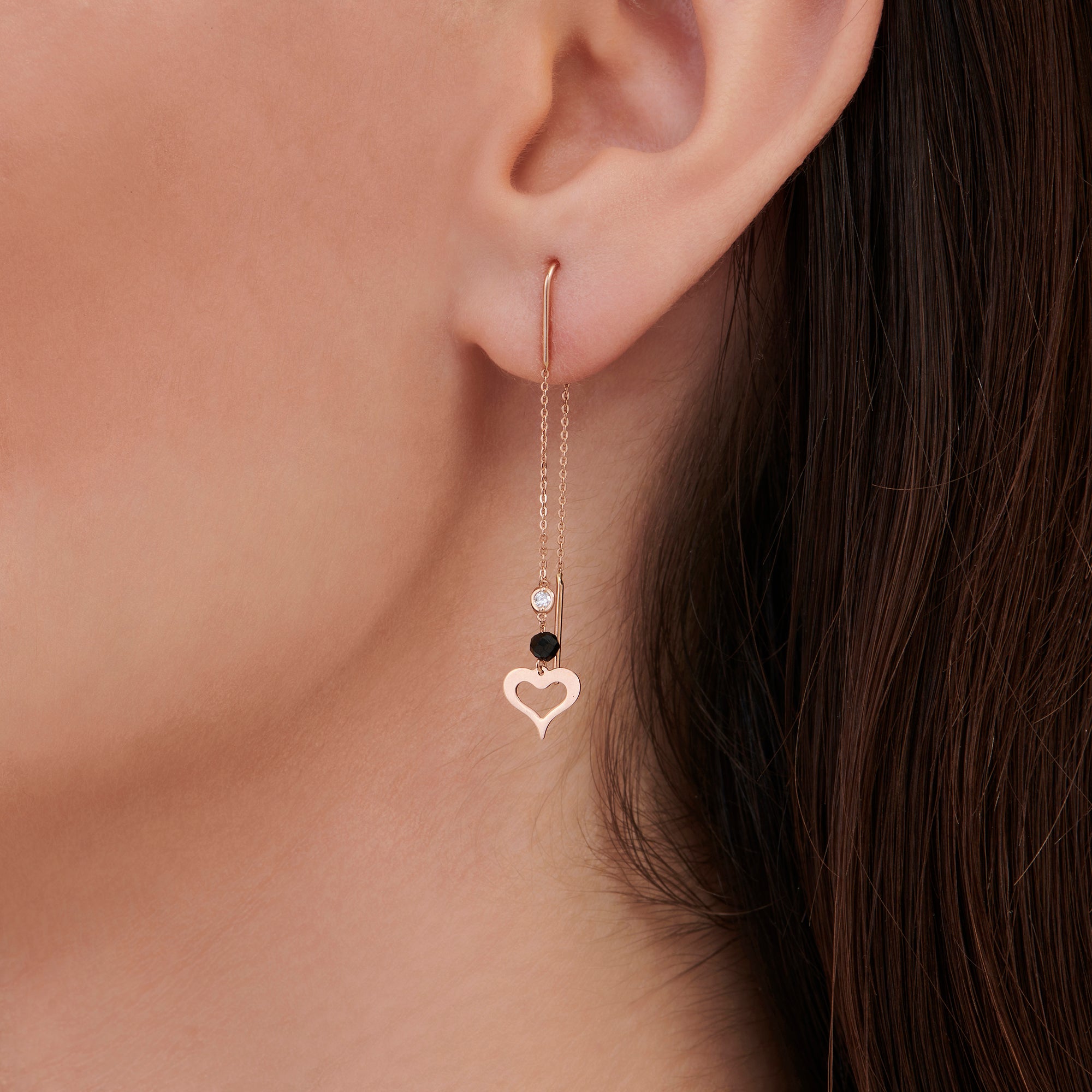 With a dainty design, the Altınbaş Jewellery Heart Diamond Earrings is carefully handcrafted from 14K Solid Gold with the most sparkling pure diamond selected and carefully set by experienced craftsmen.