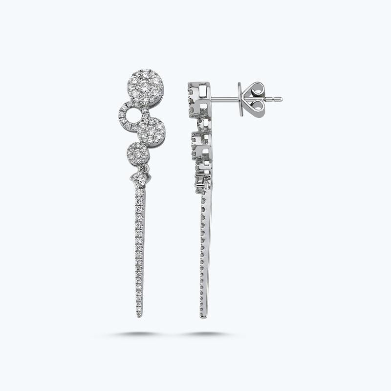 Experience the harmony of beauty and style with these stunning Diamond Earrings from Altınbaş Jewelry's Wedding Collection. Crafted with meticulous attention to detail, these earrings are a true testament to the brand's commitment to sophistication and quality. Each earring is beautifully designed in 14K white gold, a metal known for its durability and timeless appeal. The white gold setting serves as a perfect backdrop for the dazzling diamonds, enhancing their brilliance and making them a standout piece. The diamonds used in these earrings are carefully selected for their quality, ensuring that they sparkle with an unmatched radiance. Each diamond is a symbol of love and devotion, making these earrings not just a piece of jewelry but a statement of deep love. These earrings are part of our Wedding Collection, a range of jewelry designed to celebrate the most special moments in life. They are perfect for brides looking for that extra touch of elegance on their big day, or for anyone wanting to commemorate a significant milestone in a relationship. Altınbaş Diamond Earrings are more than just a piece of jewelry. They are an emblem of love and devotion, a testament to the bond between two people. They show your deep love for the person you love, making them an unforgettable gift that will be treasured for a lifetime. Choose these Diamond Earrings from Altınbaş Jewelry, and let the beauty and elegance of these stunning pieces speak volumes about your love and devotion.