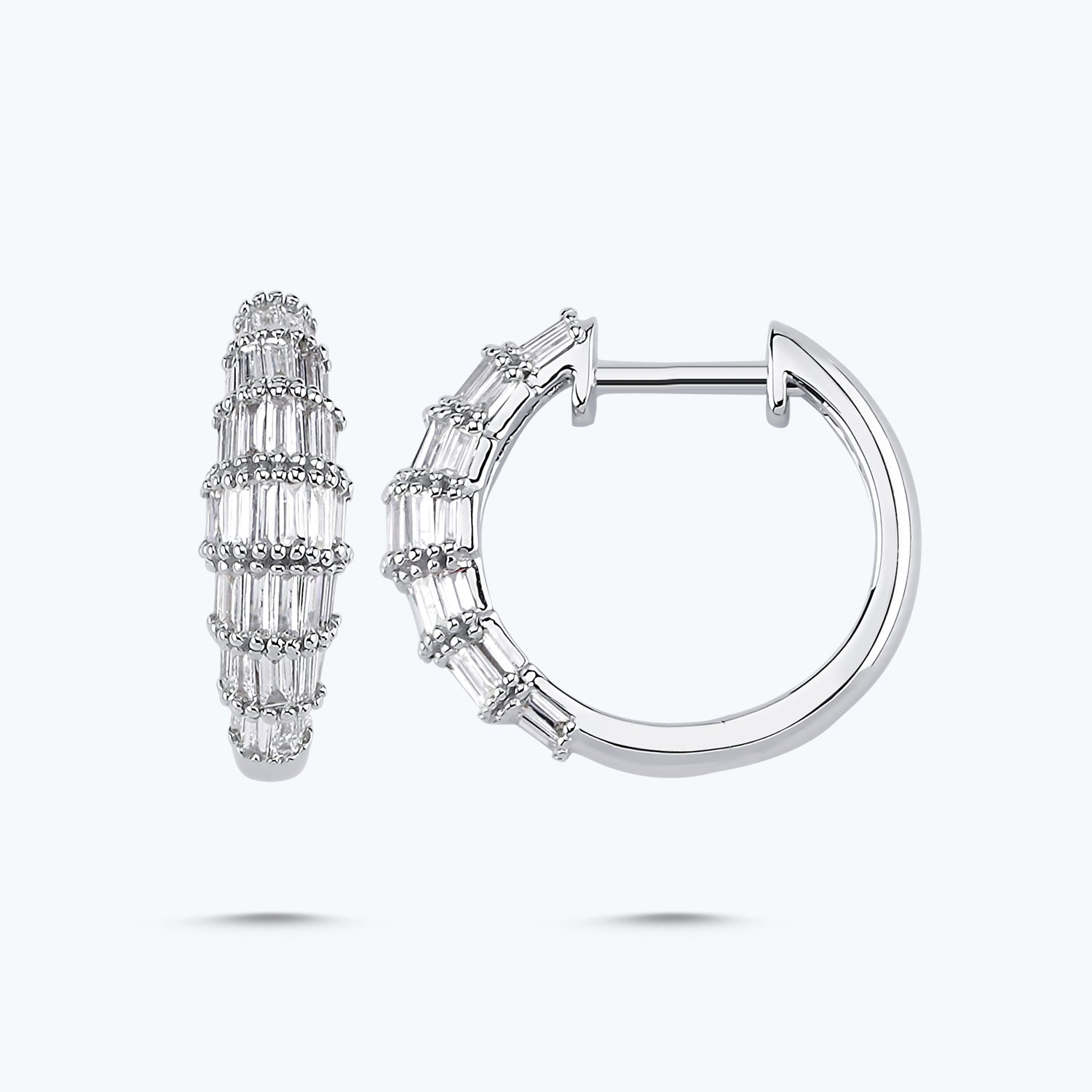 Introducing Altınbaş Jewelry's latest masterpiece - the Diamond Earrings. These earrings are meticulously crafted from 14K white gold, a material renowned for its durability and timeless appeal. The gold's pristine white color creates a stunning backdrop for the diamond accents, allowing their brilliance to take center stage. Each earring is adorned with baguette-cut diamonds, a cut that is favored for its unique ability to maximize the diamond's clarity and sparkle. The diamonds' G color rating ensures a near-colorless appearance, while the VS clarity rating guarantees minor inclusions that are not visible to the naked eye. This combination results in a pair of earrings that radiates an irresistible shine. These earrings are not just accessories; they are a statement of sophistication and elegance. They embody pure luxury, making them a perfect choice for women who appreciate fine jewelry that exudes an air of opulence. The Diamond Earrings from Altınbaş Jewelry are also seen as a harbinger of good fortune. Diamonds, with their indestructible nature, have long been associated with strength, resilience, and prosperity. Wearing these earrings could bring a sense of positivity and luck to your life. Whether you're attending a glamorous event or simply want to elevate your everyday look, these diamond earrings are an excellent choice. They add a touch of sophistication to any outfit and are sure to turn heads wherever you go. Invest in these Diamond Earrings from Altınbaş Jewelry and experience the blend of luxury, elegance, and good fortune they bring. Remember, diamonds are not just a girl's best friend; they are also a symbol of strength and prosperity. Make these earrings your new lucky charm today!