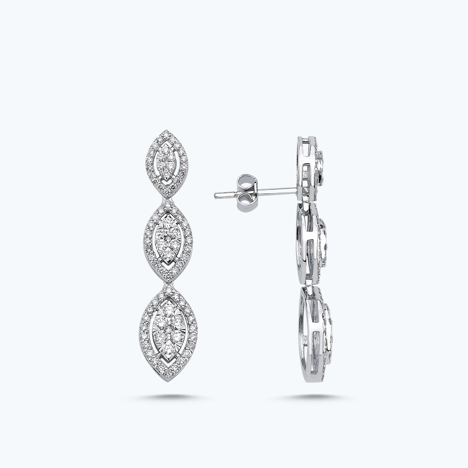 Introducing Altınbaş's Diamond Earrings, a true representation of pure elegance and infinite charm. Crafted with meticulous attention to detail, these earrings are more than just a piece of jewelry; they are a testament to the sophistication and quality that Altınbaş Jewelry embodies. These earrings are crafted from 14K white gold, a material renowned for its durability and timeless appeal. The gold's polished white hue provides a perfect backdrop for the dazzling round diamonds, enhancing their brilliance and making them the star of the show. Each diamond is carefully selected for its superior cut and clarity, ensuring that they radiate a mesmerizing sparkle from every angle. The round shape of the diamonds is not just a design choice, but also a symbol of infinite charm. Just like a circle has no beginning or end, the allure of these earrings is ceaseless. They are a perfect choice for those who wish to make a statement with their jewelry, without compromising on elegance and sophistication. Furthermore, the use of white gold and diamonds in these earrings represents purity and sanctity. They are not just accessories, but a reflection of the wearer's refined taste and pure spirit. Whether you are treating yourself or gifting them to a loved one, these earrings are a perfect choice. In every aspect, these Diamond Earrings from Altınbaş are a true embodiment of luxury and elegance. They are not just a piece of jewelry, but a testament to the wearer's exquisite taste. Wear them to any occasion, and be ready to turn heads with your infinite charm and elegance.