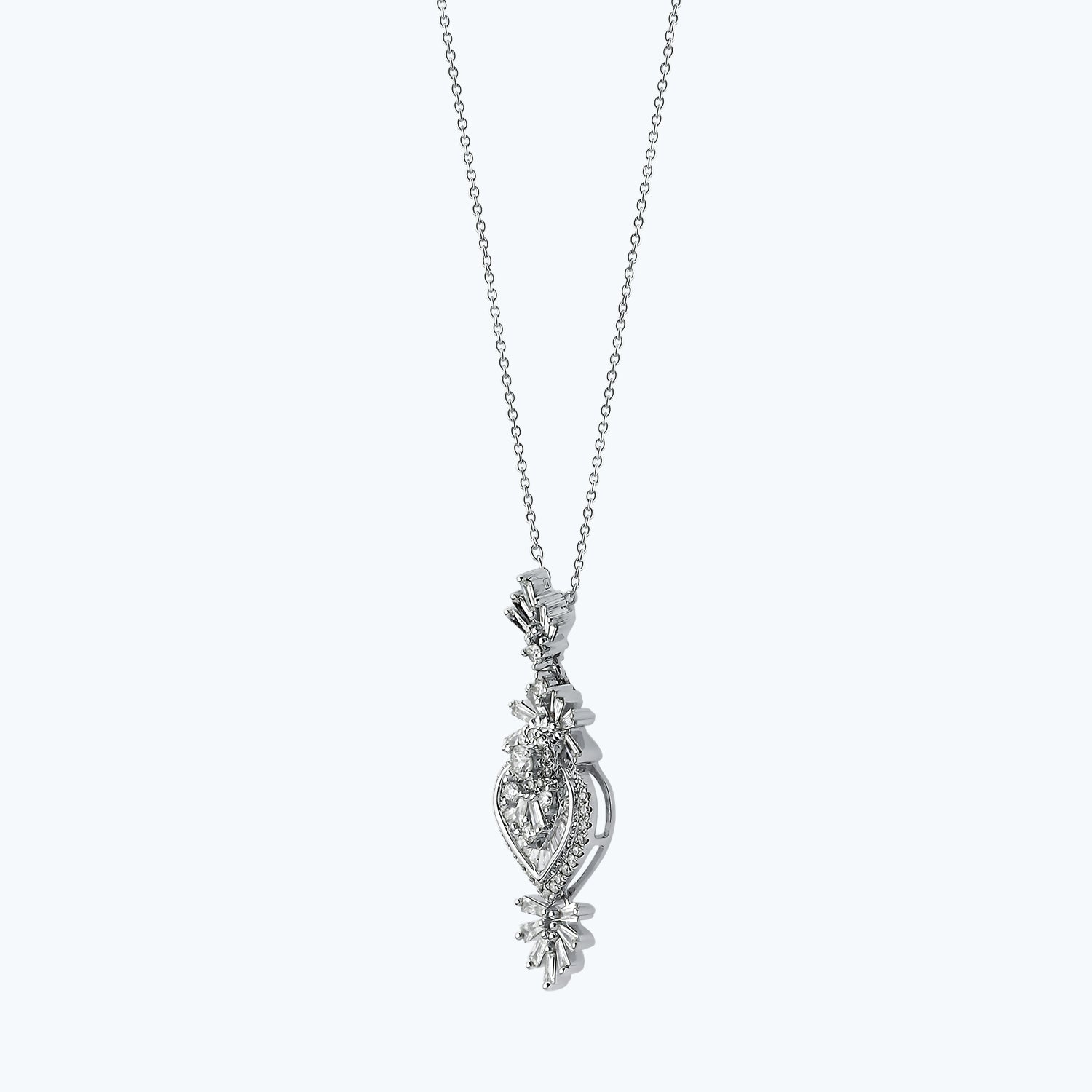 Indulge in the timeless beauty and pure luxury of Altınbaş Jewelry’s Diamond Necklace. This exquisite piece is a testament to our commitment to sophistication and quality, designed to make every occasion feel like a celebration. Expertly crafted from 14K white gold, this necklace is a perfect blend of elegance and durability. The white gold serves as a stunning backdrop, enhancing the brilliance and sparkle of the diamonds, making it a piece that truly stands out. Our Diamond Necklace is adorned with baguette diamonds, a unique and sophisticated choice that adds a contemporary twist to the classic diamond necklace. The baguette cut is known for its clean lines and dramatic angles, capturing and reflecting light in a way that is simply mesmerizing. Each diamond is meticulously selected and set, ensuring the highest level of craftsmanship. The diamonds' radiance combined with the luster of the white gold creates an irresistible allure, making this necklace a must-have addition to any jewelry collection. This necklace is not just an accessory, it's an expression of timeless beauty, embodying pure luxury in every detail. It's a statement piece that speaks volumes about the wearer's refined taste and love for the finer things in life. Whether you're purchasing it as a gift for a loved one or treating yourself, this Diamond Necklace from Altınbaş Jewelry is sure to leave a lasting impression. It's more than just a piece of jewelry, it's a symbol of elegance, sophistication, and timeless beauty.