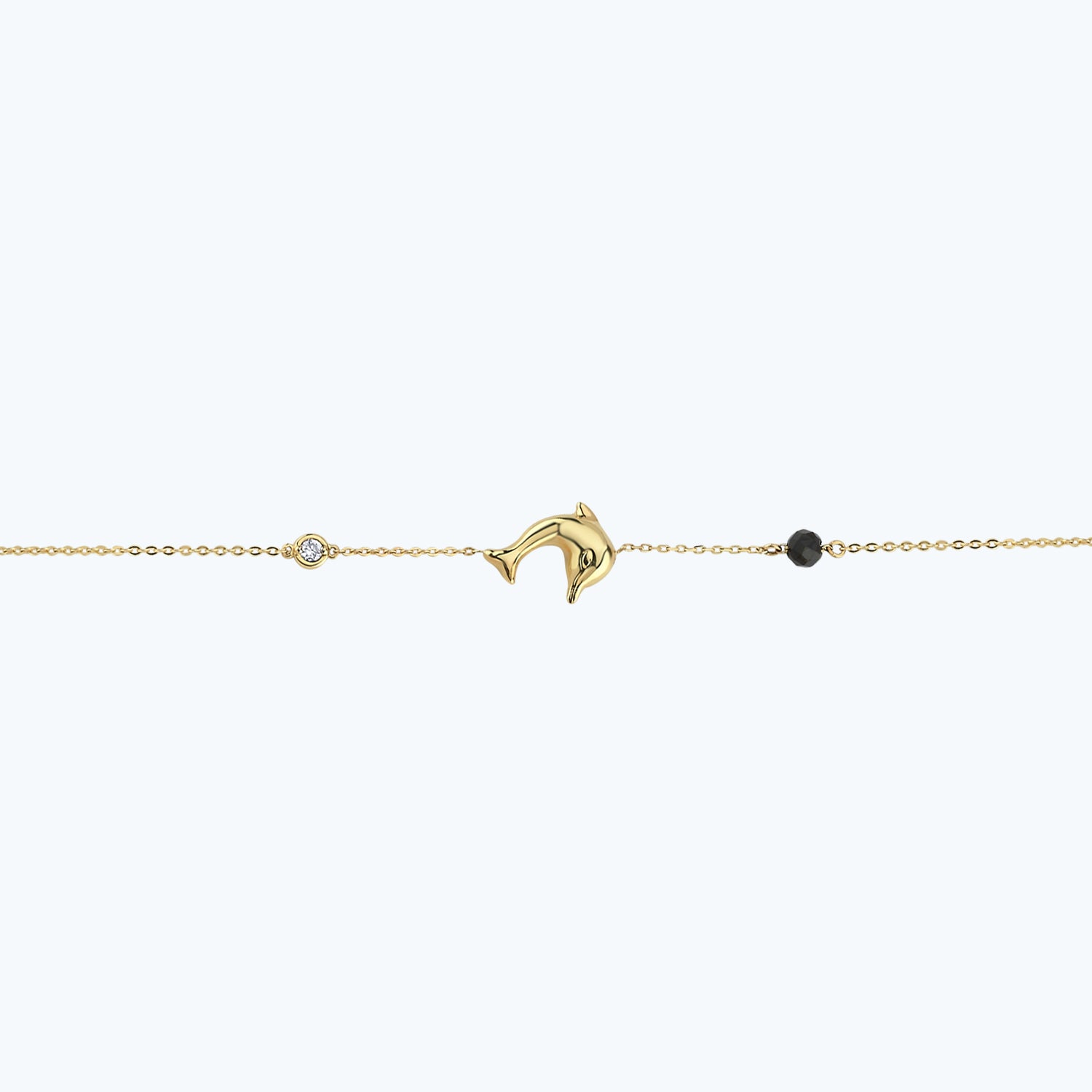 Introducing the Dolphin Diamond Bracelet from Altınbaş Jewelry, a piece that effortlessly embodies the eternal elegance of the wearer. Crafted with meticulous detail, this bracelet is a testament to the timeless sophistication that Altınbaş Jewelry is renowned for. This exquisite bracelet is fashioned from 14K gold, a metal revered for its lustrous shine and exceptional durability. Its rich gold hue serves as a beautiful canvas for the vibrant green diamonds, creating a striking contrast that is sure to captivate. The centerpiece of this bracelet is a charming dolphin motif, adorned with dazzling green diamonds. These diamonds are expertly cut and set to catch the light from every angle, ensuring that your bracelet sparkles brilliantly with each movement of your wrist. The Dolphin Diamond Bracelet is more than just a piece of jewelry, it's a symbol of your unique style and taste. The playful dolphin design adds a touch of whimsy to the bracelet, making it a standout piece in any jewelry collection. The bracelet's adjustable clasp ensures a comfortable fit for all wrist sizes, making it a perfect gift for a loved one or a luxurious treat for yourself. Whether you're attending a formal event or enjoying a casual day out, this bracelet is sure to add a touch of elegance to any outfit. With the Dolphin Diamond Bracelet, you're not just wearing a piece of jewelry; you're wearing a symbol of eternal elegance. Experience the luxury and sophistication of Altınbaş Jewelry with this exquisite piece.