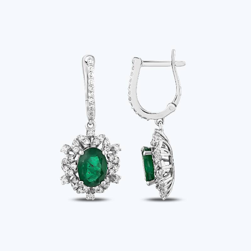 Discover the captivating allure of gold with Altınbaş Jewelry's Emerald Diamond Earring. This exquisite piece of jewelry is more than just an accessory; it's a mark of honor and respect, a testament to your refined taste and sophistication. Expertly crafted from 14K white gold, this earring is designed to enhance feminine grace, drawing attention to the delicate curves of the ear with its shiny finish and elegant design. The use of white gold not only adds a contemporary touch to the piece but also enhances the brilliance of the embedded diamonds, making them shine brighter and bolder. At the heart of this earring is a stunning oval gemstone, a magnificent emerald that radiates with an intense green hue. This gemstone, known for its calming and balancing energy, brings a unique charm to the earring, making it a must-have for every jewelry collection. Surrounding the emerald are sparkling diamonds, meticulously arranged to accentuate the allure of the central gemstone. The diamonds add a touch of glamour to the piece, their radiant sparkle reflecting off the white gold to create a mesmerizing effect. Whether you're attending a formal event or a casual gathering, this Emerald Diamond Earring will surely make you stand out. Its sophisticated design and shiny finish make it versatile enough to complement any outfit, while its captivating allure is sure to turn heads wherever you go. Invest in this Emerald Diamond Earring from Altınbaş Jewelry, and let its sophisticated charm and shiny allure become a part of your everyday style. This piece doesn't just adorn you; it celebrates you, enhancing your feminine grace and marking you as a woman of respect and honor.
