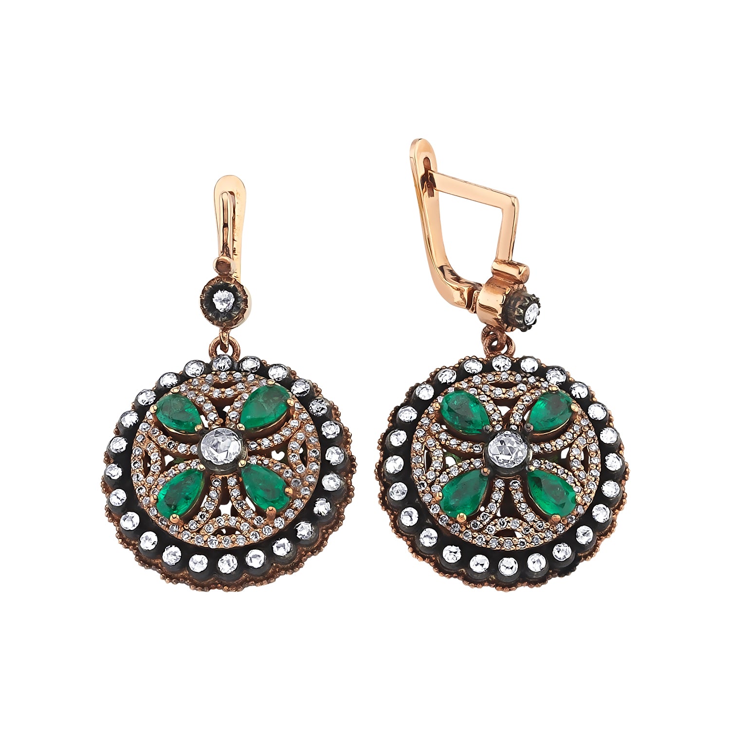 Introducing the Emerald Diamond Earrings from Altınbaş Jewelry, a true embodiment of sophistication and quality. Crafted with precision and elegance, these earrings represent an eternal loop of luxury, offering a romantic touch to your ensemble. They are meticulously designed with a beautiful combination of 8K pink gold and pear-shaped emeralds, a precious gemstone known for representing compassion and nurturing. The earrings feature a radiant rose cut that enhances the brilliance of the colored stones, reflecting a touch of royal charm. The round diamonds, set in a vintage design, depict timeless elegance and sophistication, making these earrings a perfect celebration of love and friendship. The emerald and diamond combination is more than just a piece of jewelry; it's a symbol of your dynamic persona, a celebration of a love that's pure and deep. With these earrings, you carry a piece of history in your hands, a testament to the enduring allure of vintage design. The Emerald Diamond Earrings are not just a purchase, they're an investment in your personal style, a perfect blend of luxury and comfort. Altınbaş Jewelry invites you to experience the charm and elegance of these stunning earrings, a true reflection of your refined taste and love for the finer things in life.