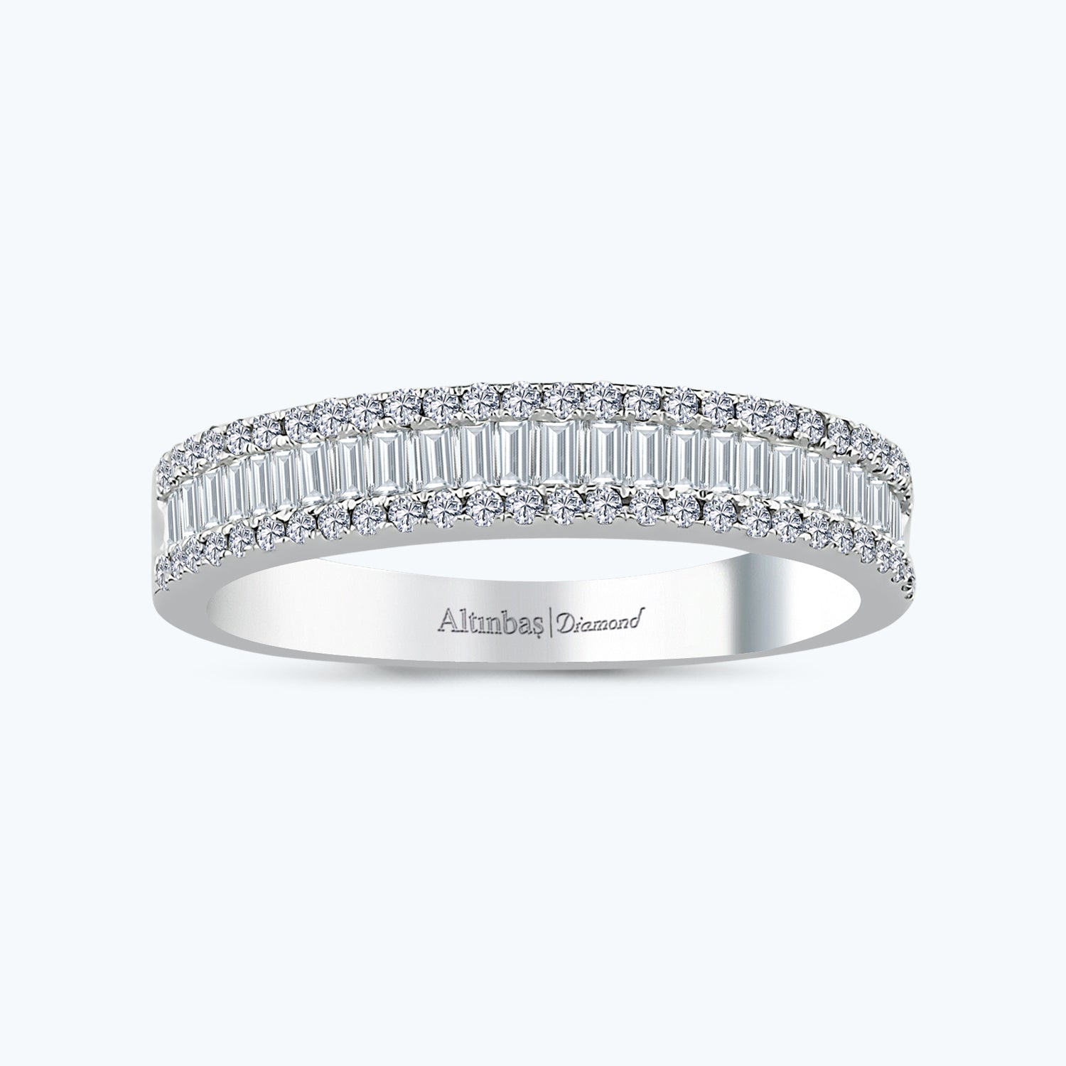 Introducing the Eternity Diamond Ring from Altınbaş Jewelry, a luxury brand renowned for its sophisticated designs and top-quality craftsmanship. This breathtaking piece is a true mark of honor and respect, designed for those who appreciate the finer things in life. This ring showcases an exquisite band of white gold, a choice of metal that brings a modern touch to this timeless piece. The white gold band is meticulously crafted to ensure durability and longevity, making it a piece that can be cherished for generations. But the true beauty of this ring lies in its stunning array of diamonds. The diamonds are precisely cut into a baguette shape, a design that adds a unique and fashionable twist to the classic diamond ring. Each diamond is meticulously set into the band, creating a seamless flow of sparkle that encircles your finger. This Eternity Diamond Ring is perfectly curated for the stylish woman. Its elegant design and sparkling diamonds make it a versatile piece that can be worn with any outfit. Whether it's for a formal event or a casual day out, this ring adds a touch of elegance and sophistication to your look. With Altınbaş Jewelry, you're not just buying a piece of jewelry. You're investing in a piece of art that embodies luxury, class, and timeless beauty. This Eternity Diamond Ring is more than just an accessory. It's a statement, a testament to your impeccable taste and love for quality. So why wait? Elevate your jewelry collection with this stunning Eternity Diamond Ring from Altınbaş Jewelry. It's not just a ring, it's a celebration of your unique style and elegance.