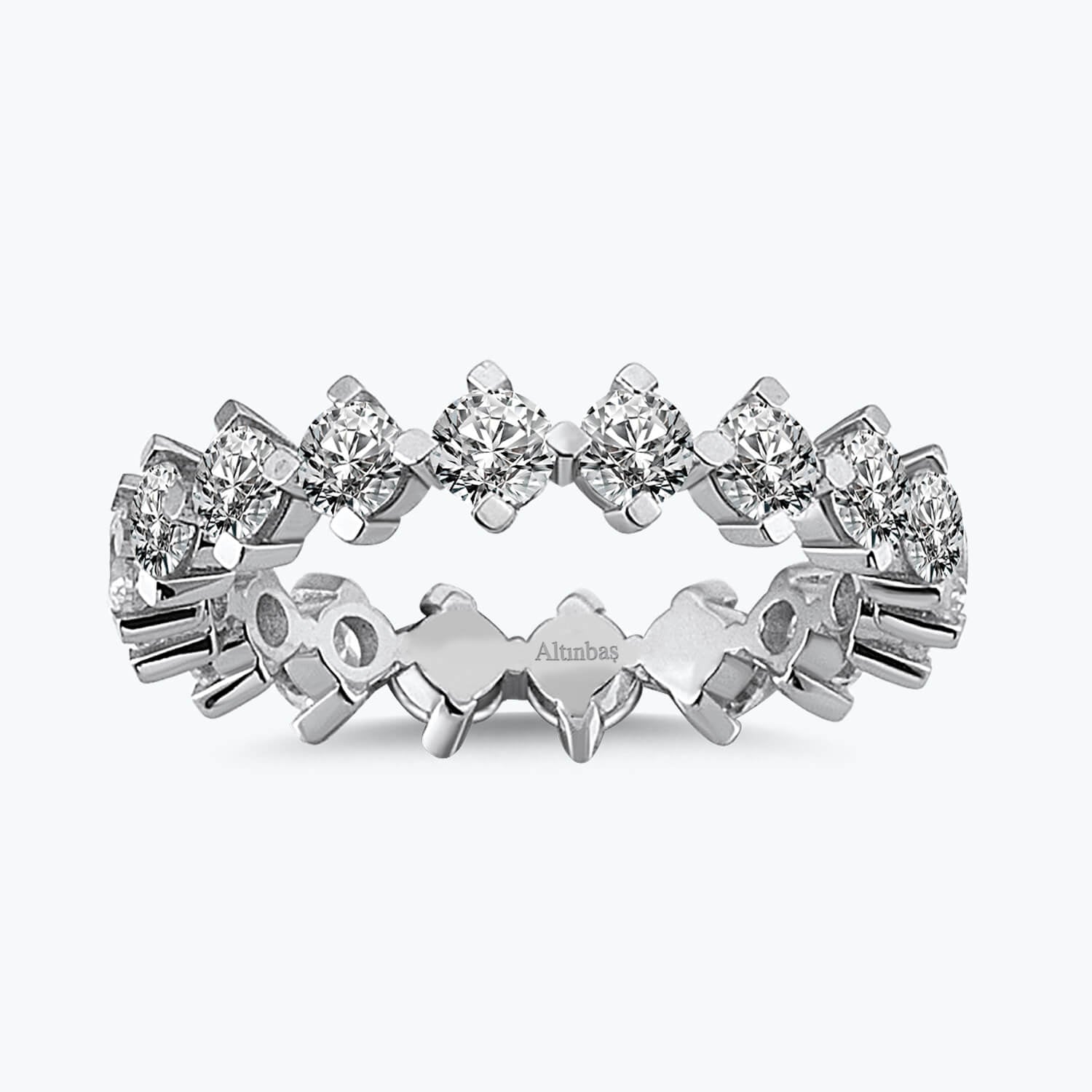 Embrace the timeless elegance of Altınbaş Jewelry with our Eternity Gold Ring. Crafted with the utmost precision and care, this enchanting piece is a testament to our commitment to quality and sophistication. This ring is not just a piece of jewelry; it's an eternal symbol of love and commitment, a beautiful representation of your love story. The Eternity Gold Ring is meticulously designed with 14K white gold, a testament to its enduring quality and charm. The white gold provides a luxurious backdrop that exudes a contemporary yet classic appeal, making it a versatile piece that can effortlessly elevate any ensemble. Adorned with a series of round Cubic Zirconia, this ring sparkles with a brilliance that captures the eye. Each gemstone is carefully set in an endless circle of fashion, a design that embodies sophistication and charm. This continuous loop of shimmering stones symbolizes the eternal nature of love, making it an ideal gift for anniversaries, birthdays, or simply to express your everlasting affection. The Eternity Gold Ring is a piece designed for women who appreciate the blend of style, quality, and symbolic meaning in their jewelry. It's more than just a ring - it's a statement of everlasting love and commitment, a piece that tells a story of timeless romance. Altınbaş Jewelry invites you to celebrate your love story with this exquisite Eternity Gold Ring. Experience the blend of sophistication, charm, and the eternal symbol of love that this piece offers. Make this ring a part of your jewelry collection and let it serve as a daily reminder of your endless love.
