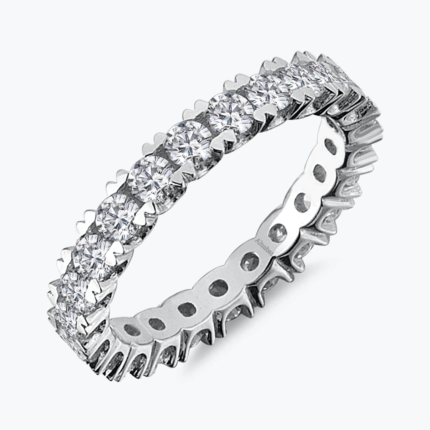 Introducing the Eternity Gold Ring from Altınbaş Jewelry, a piece that is the epitome of timeless elegance and sophistication. Crafted from 14K white gold, this ring is not just a piece of jewelry but a token of infinite beauty that adds a touch of luxury to any ensemble. The captivating allure of gold is magnificently captured in this ring, making it a must-have for any woman's jewelry collection. The ring is adorned with a band of round cubic zirconia, each meticulously set to capture and reflect light, creating a dazzling display that is sure to catch the eye. The design of this Eternity Gold Ring is inspired by the concept of an infinite cycle of beauty. The continuous circle of cubic zirconia symbolizes an unending journey, making it a perfect representation of a shared future. It's more than a ring; it's a promise of everlasting love and commitment. The Eternity Gold Ring from Altınbaş Jewelry is not just a piece of jewelry, it's a piece of art that effortlessly combines tradition with modern elegance. The 14K white gold setting enhances the brilliance of the cubic zirconia, creating a stunning contrast that is both sophisticated and striking. Whether it's for an anniversary, a special occasion, or just because, this Eternity Gold Ring is the perfect gift to express your eternal love. It's an exquisite piece that is sure to be cherished for a lifetime. Choose the Eternity Gold Ring from Altınbaş Jewelry, a ring that depicts timeless elegance and sophistication, and let it be the symbol of your infinite love story.