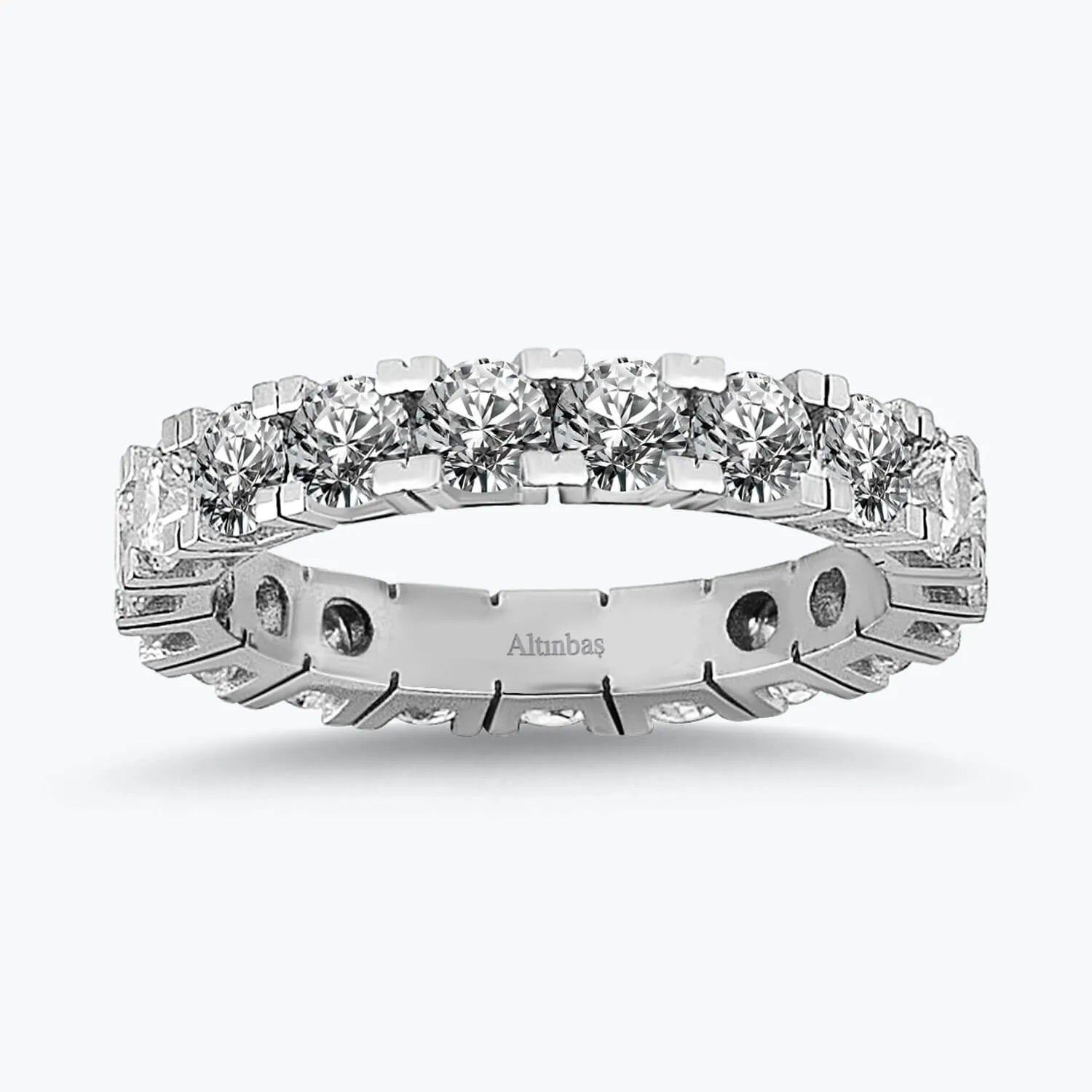 Introducing the Eternity Gold Ring, a stunning piece from Altınbaş Jewelry that is designed to elevate your style and enhance your elegance. This ring is not just a piece of jewelry, but a symbol of unending love and affection, making it an excellent choice for those who value the harmony of beauty and style. Masterfully crafted from 14K white gold, this ring is a testament to Altınbaş's commitment to quality and sophistication. The gold used in the creation of this ring is of the highest standard, ensuring that the ring retains its lustrous shine and durability over time. The ring is adorned with Cubic Zirconia stones, adding to its allure. These stones are carefully selected and meticulously placed around the ring, creating a continuous circle that symbolizes an endless celebration of love. The brilliance of these stones beautifully complements the white gold band, creating a piece that is as captivating as it is meaningful. The Eternity Gold Ring embodies sophistication and charm, making it a perfect choice for the modern woman. It is a versatile piece that can be worn on various occasions, from casual outings to formal events, adding a touch of elegance to any outfit. Altınbaş Jewelry is known for its luxurious and high-quality pieces, and this ring is no exception. It is a reflection of the brand's dedication to creating jewelry that not only looks stunning but also holds a deeper significance. In the world of Altınbaş, every piece tells a story, and the Eternity Gold Ring is a tale of endless love and timeless elegance. Make this ring a part of your jewelry collection and let it speak volumes about your refined taste and love for exquisite jewelry.